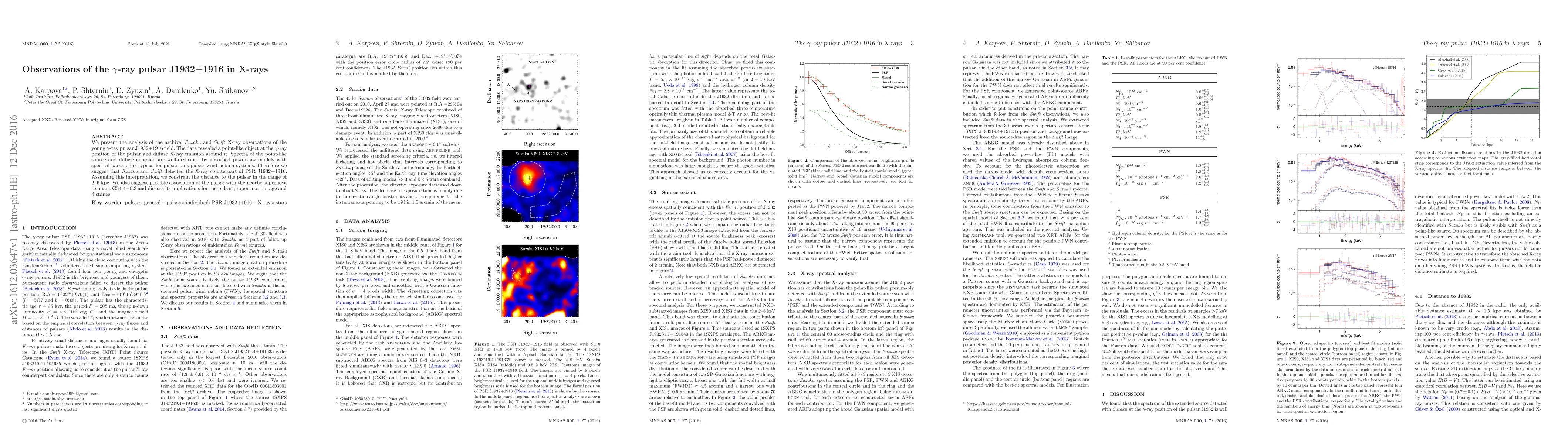 Researchers detect X-ray counterpart of gamma-ray pulsar J1932+1916, constraining its distance to 2-6 kpc, and suggest possible association with nearby supernova remnant.