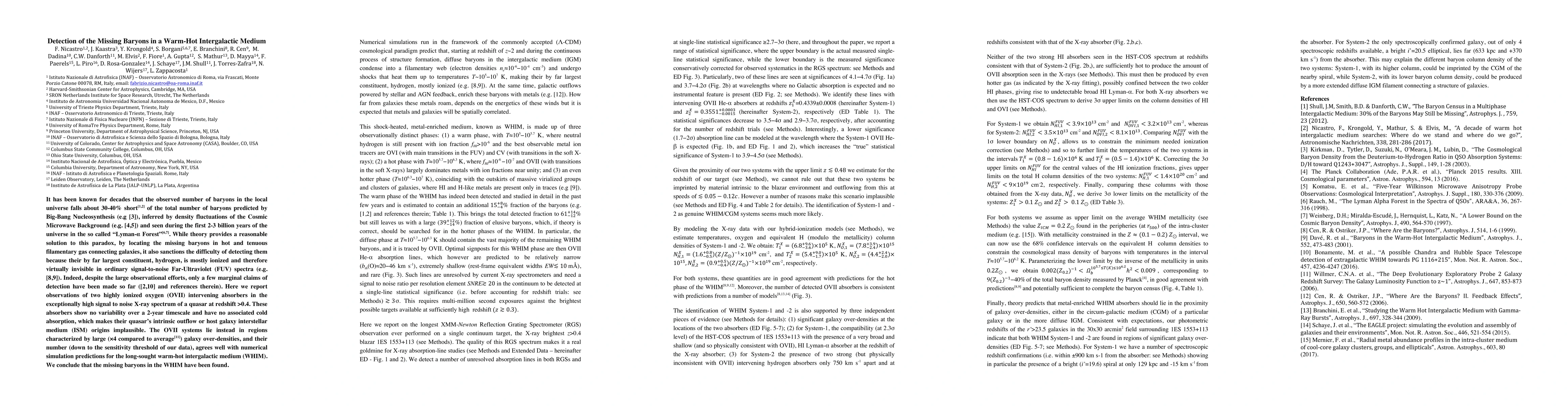 This paper reports the detection of two highly ionized oxygen absorbers in the X-ray spectrum of a quasar, providing evidence for the existence of the warm-hot intergalactic medium (WHIM). The observed absorbers align with numerical predictions and suggest the location of missing baryons in the universe.