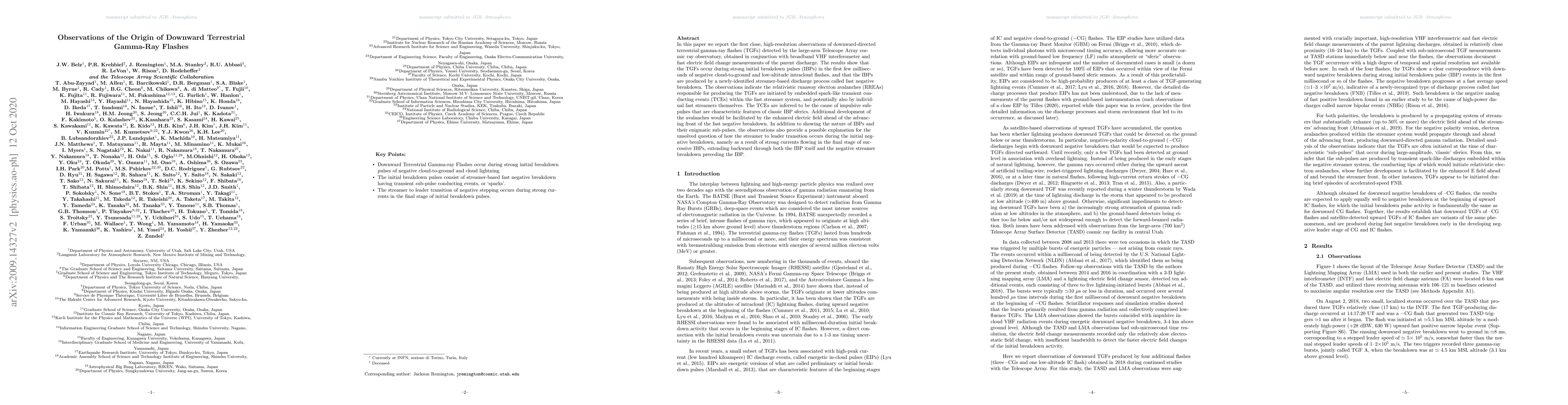 This paper presents high-resolution observations of downward terrestrial gamma-ray flashes (TGFs) linked to strong initial breakdown pulses (IBPs) in negative cloud-to-ground and low-altitude intracloud flashes. The findings suggest that TGFs are initiated by spark-like transient conducting events within a fast negative breakdown process, explaining the origin of relativistic runaway electron avalanches.