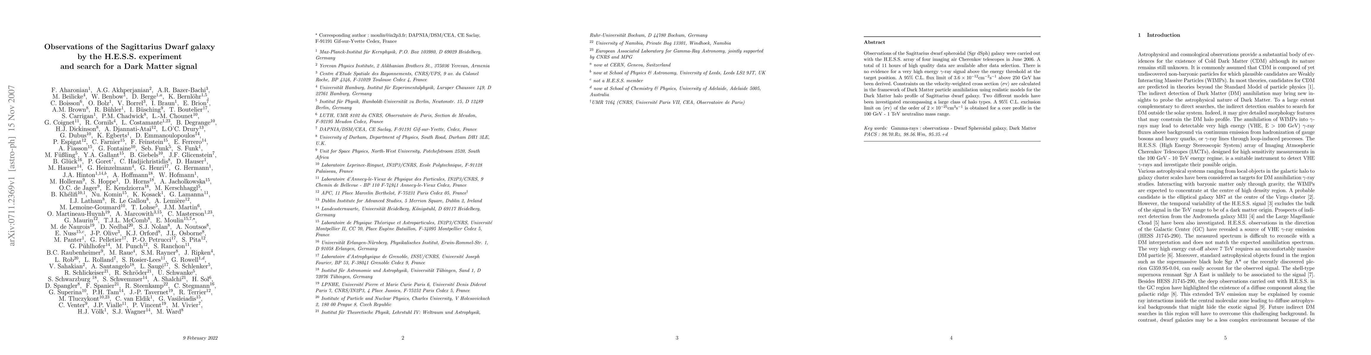 The H.E.S.S. experiment searched for dark matter signals in the Sagittarius dwarf galaxy and set a 95% confidence level flux limit of 3.6 x 10^-12 cm^-2s^-1 above 250 GeV, excluding dark matter annihilation with cross-sections below 2 x 10^-25 cm^3s^-1.