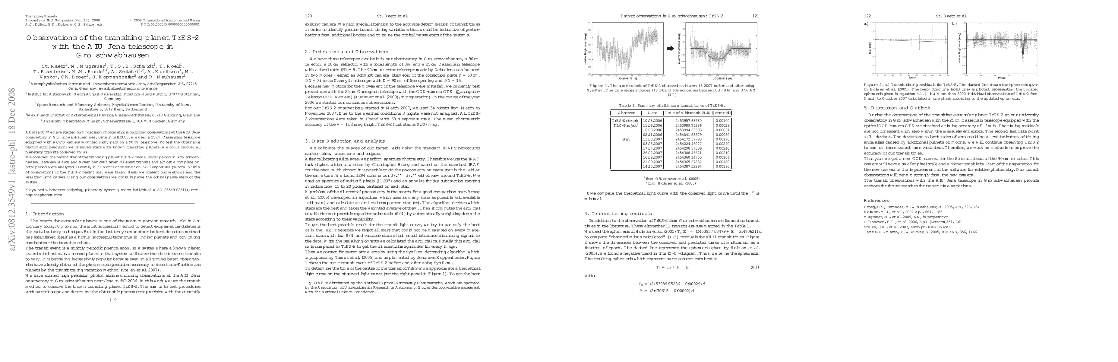 We have started high precision photometric monitoring observations at the AIU Jena observatory in Grossschwabhausen near Jena in fall 2006. We used a 25 cm Cassegrain telescope equipped with a CCD-camera mounted picky-pack on a 90 cm telescope. To test the obtainable photometric precision, we observed stars with known transiting planets. We could recover all planetary transits observed by us. We observed the parent star of the transiting planet TrES-2 over a longer period in Grossschwabhausen. Between March and November 2007 seven different transits and almost a complete orbital period were analyzed. Overall, in 31 nights of observation 3423 exposures (in total 57.05 h of observation) of the TrES-2 parent star were taken. Here, we present our methods and the resulting light curves. Using our observations we could improve the orbital parameters of the system.