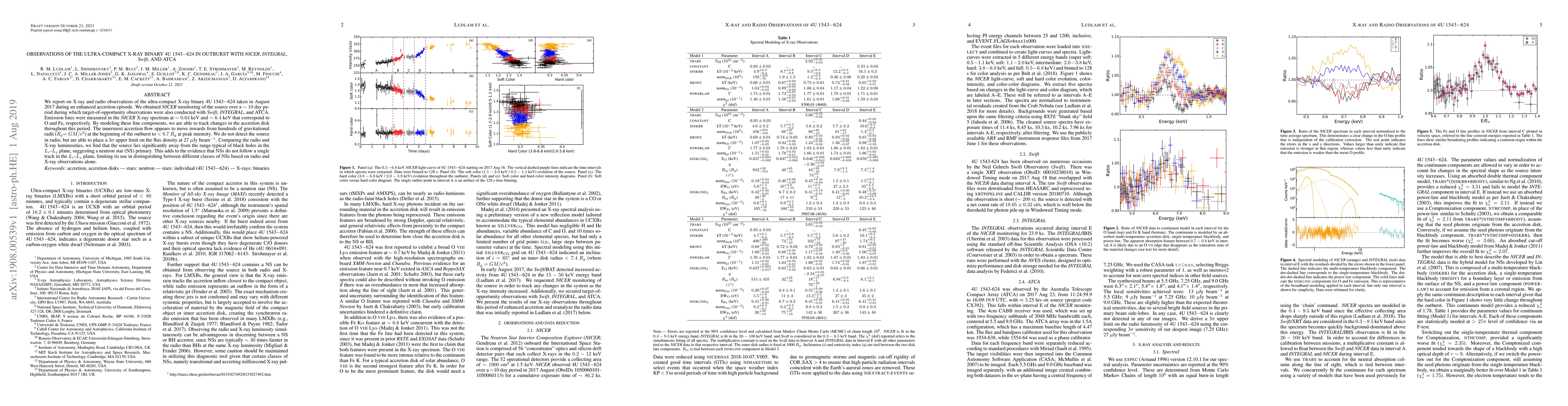 We report on X-ray and radio observations of the ultra-compact X-ray binary 4U 1543-624 taken in August 2017 during an enhanced accretion episode. We obtained NICER monitoring of the source over a $\sim10$ day period during which target-of-opportunity observations were also conducted with Swift, INTEGRAL, and ATCA. Emission lines were measured in the NICER X-ray spectrum at $\sim0.64$ keV and $\sim6.4$ keV that correspond to O and Fe, respectively. By modeling these line components, we are able to track changes in the accretion disk throughout this period. The innermost accretion flow appears to move inwards from hundreds of gravitational radii ($R_{g}=GM/c^{2}$) at the beginning of the outburst to $<8.7$ $R_{g}$ at peak intensity. We do not detect the source in radio, but are able to place a $3\sigma$ upper limit on the flux density at $27$ $\mu$Jy beam$^{-1}$. Comparing the radio and X-ray luminosities, we find that the source lies significantly away from the range typical of black holes in the ${L}_{{r}}$-${L}_{{x}}$ plane, suggesting a neutron star (NS) primary. This adds to the evidence that NSs do not follow a single track in the ${L}_{{r}}$-${L}_{{x}}$ plane, limiting its use in distinguishing between different classes of NSs based on radio and X-ray observations alone.