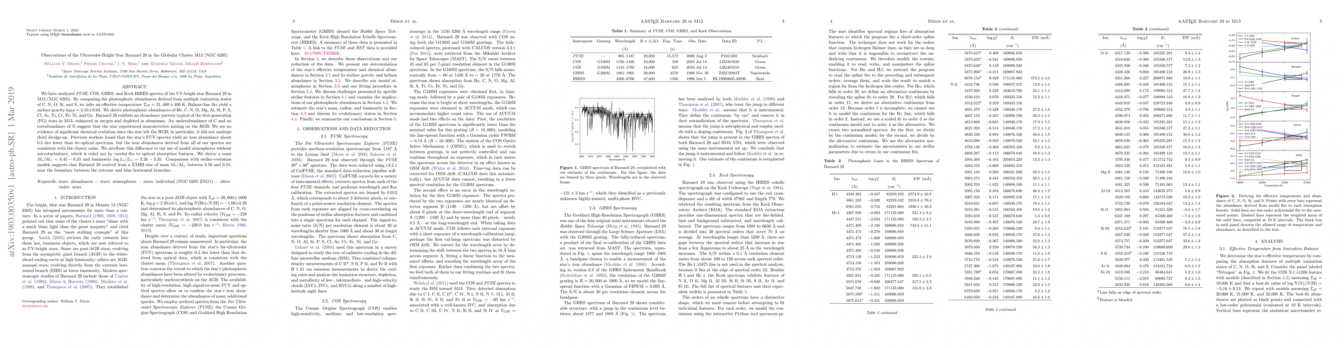 We have analyzed FUSE, COS, GHRS, and Keck HIRES spectra of the UV-bright star Barnard 29 in M13 (NGC 6205). By comparing the photospheric abundances derived from multiple ionization states of C, N, O, Si, and S, we infer an effective temperature T_eff = 21,400 +/- 400 K. Balmer-line fits yield a surface gravity log g = 3.10 +/- 0.03. We derive photospheric abundances of He, C, N, O, Mg, Al, Si, P, S, Cl, Ar, Ti, Cr, Fe, Ni, and Ge. Barnard 29 exhibits an abundance pattern typical of the first-generation stars in M13, enhanced in oxygen and depleted in aluminum. An underabundance of C and an overabundance of N suggest that the star experienced nonconvective mixing on the RGB. We see no evidence of significant chemical evolution since the star left the RGB; in particular, it did not undergo third dredge-up. Previous workers found that the star's FUV spectra yield an iron abundance about 0.5 dex lower than its optical spectrum, but the iron abundances derived from all of our spectra are consistent with the cluster value. We attribute this difference to our use of model atmospheres without microturbulence, which is ruled out by careful fits to optical absorption features. We derive a mass M_*/M_sun = 0.45 - 0.55 and luminosity log (L_*/L_sun) = 3.26 - 3.35. Comparison with stellar-evolution models suggests that Barnard 29 evolved from a ZAHB star of mass M_*/M_sun between 0.50 and 0.55, near the boundary between the extreme and blue horizontal branches.