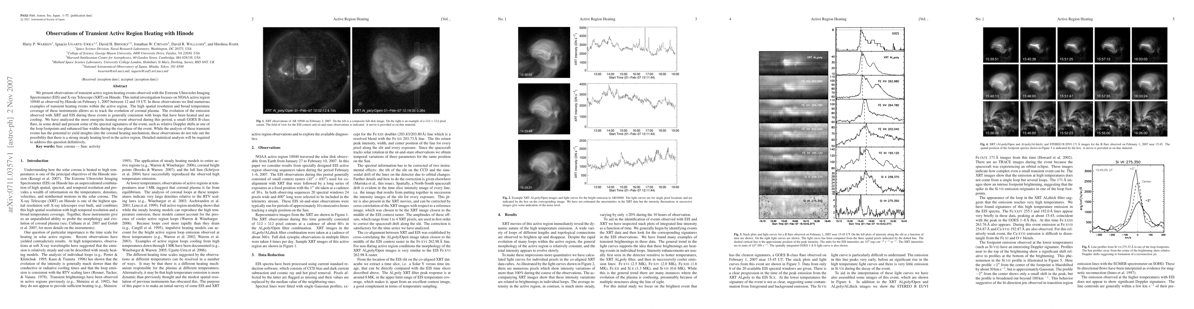 This study uses Hinode's EIS and XRT to observe transient heating events in active region 10940, finding numerous instances of such heating. The analysis of a GOES B-class flare reveals spectral signatures like Doppler shifts and enhanced line widths, suggesting insights into coronal heating mechanisms, though steady heating cannot be ruled out yet.