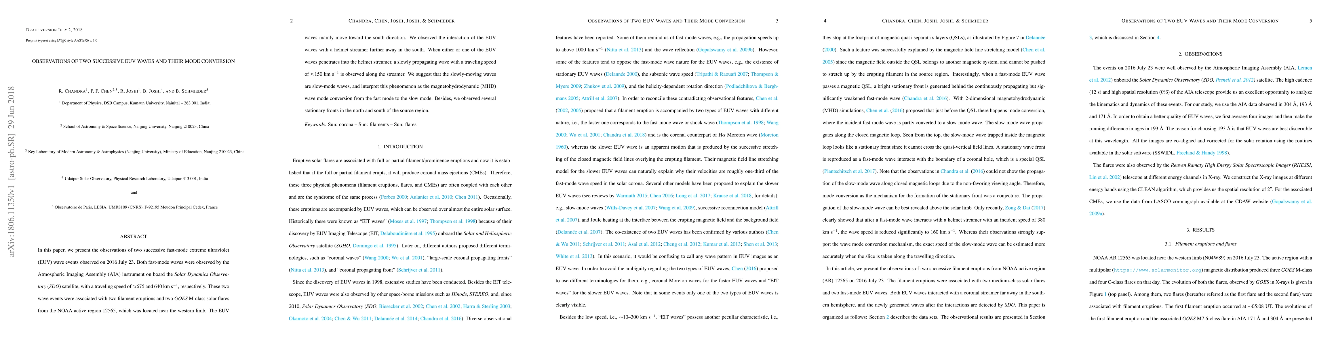 This paper reports observations of two successive fast-mode EUV waves from filament eruptions and solar flares, detected by the SDO satellite. The waves interact with a helmet streamer, converting to slower-moving slow-mode waves, suggesting magnetohydrodynamic mode conversion.