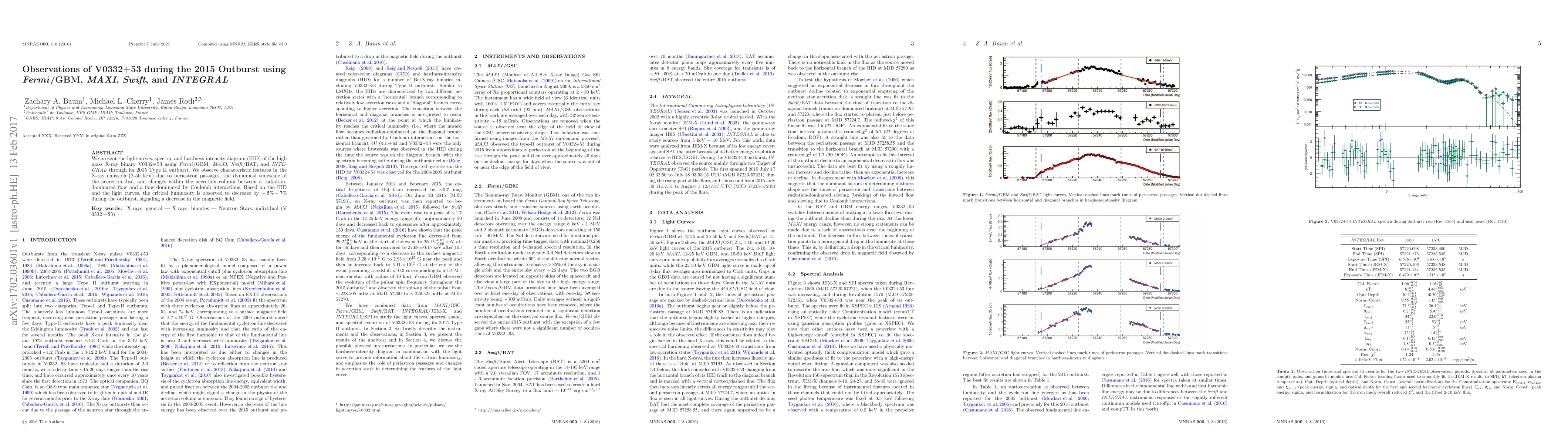 We present the lightcurves, spectra, and hardness-intensity diagram (HID) of the high mass X-ray binary V0332+53 using Fermi/GBM, MAXI, Swift/BAT, and INTEGRAL through its 2015 Type II outburst. We observe characteristic features in the X-ray emission (2-50 keV) due to periastron passages, the dynamical timescale of the accretion disc, and changes within the accretion column between a radiation-dominated flow and a flow dominated by Coulomb interactions. Based on the HID and the light curves, the critical luminosity is observed to decrease by ~5-7 percent during the outburst, signaling a decrease in the magnetic field.
