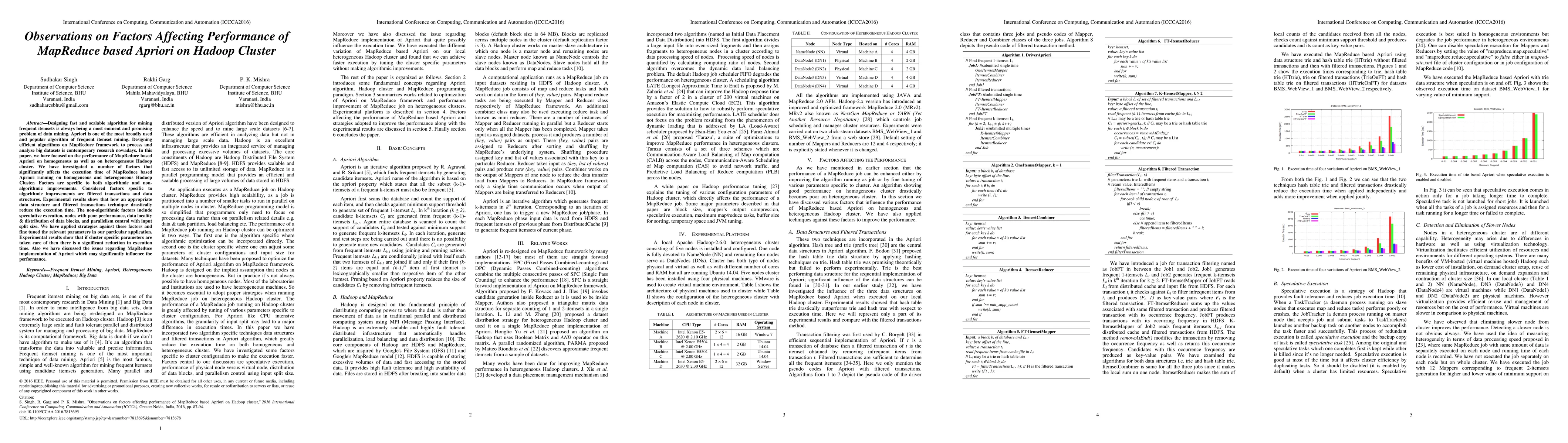 This paper investigates the performance of MapReduce-based Apriori on Hadoop clusters, identifying factors that affect execution time. Both algorithmic improvements, such as filtered transactions and data structures, and non-algorithmic factors, including speculative execution and data locality, are analyzed. Fine-tuning these parameters significantly reduces execution time.