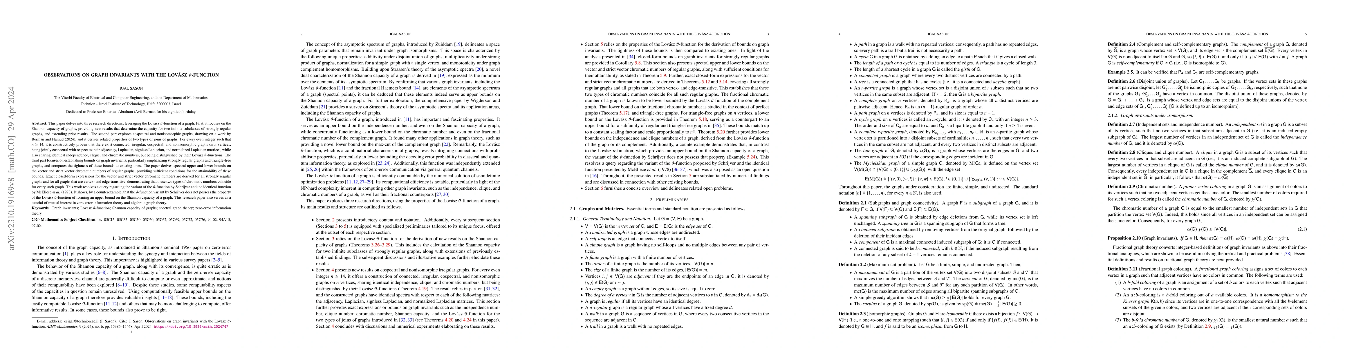 This paper explores the application of the Lovász $\vartheta$-function in determining the Shannon capacity of strongly regular graphs, identifies cospectral and nonisomorphic graphs, and establishes bounds on graph invariants, particularly for strongly regular and triangle-free graphs, while resolving a query about the $\vartheta$-function's properties.