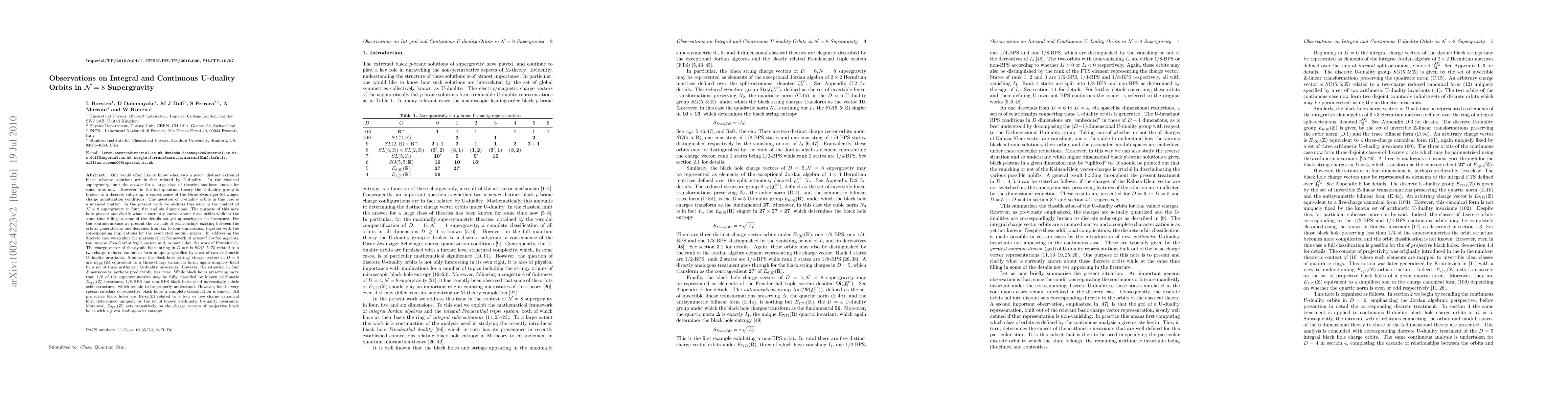 One would often like to know when two a priori distinct extremal black p-brane solutions are in fact U-duality related. In the classical supergravity limit the answer for a large class of theories has been known for some time. However, in the full quantum theory the U-duality group is broken to a discrete subgroup and the question of U-duality orbits in this case is a nuanced matter. In the present work we address this issue in the context of N=8 supergravity in four, five and six dimensions. The purpose of this note is to present and clarify what is currently known about these discrete orbits while at the same time filling in some of the details not yet appearing in the literature. To this end we exploit the mathematical framework of integral Jordan algebras and Freudenthal triple systems. The charge vector of the dyonic black string in D=6 is SO(5,5;Z) related to a two-charge reduced canonical form uniquely specified by a set of two arithmetic U-duality invariants. Similarly, the black hole (string) charge vectors in D=5 are E_{6(6)}(Z) equivalent to a three-charge canonical form, again uniquely fixed by a set of three arithmetic U-duality invariants. The situation in four dimensions is less clear: while black holes preserving more than 1/8 of the supersymmetries may be fully classified by known arithmetic E_{7(7)}(Z) invariants, 1/8-BPS and non-BPS black holes yield increasingly subtle orbit structures, which remain to be properly understood. However, for the very special subclass of projective black holes a complete classification is known. All projective black holes are E_{7(7)}(Z) related to a four or five charge canonical form determined uniquely by the set of known arithmetic U-duality invariants. Moreover, E_{7(7)}(Z) acts transitively on the charge vectors of black holes with a given leading-order entropy.