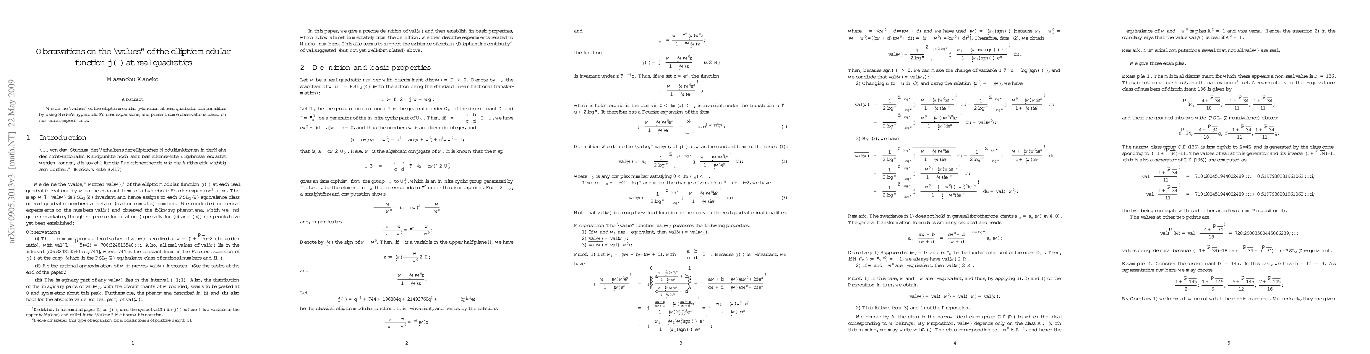 We define "values" of the elliptic modular j-function at real quadratic irrationalities by using Hecke's hyperbolic Fourier expansions, and present some observations based on numerical experiments.