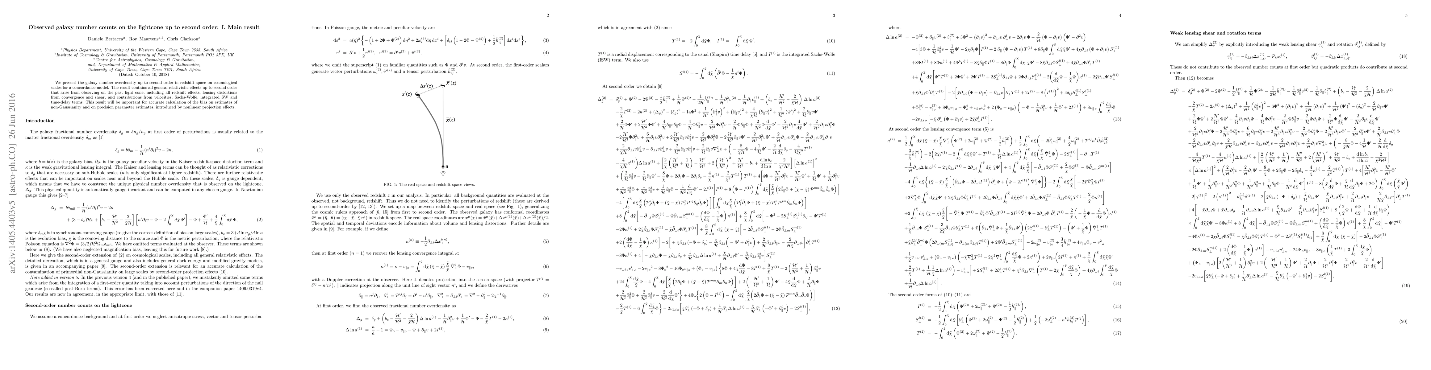 We present the galaxy number overdensity up to second order in redshift space on cosmological scales for a concordance model. The result contains all general relativistic effects up to second order that arise from observing on the past light cone, including all redshift effects, lensing distortions from convergence and shear, and contributions from velocities, Sachs-Wolfe, integrated SW and time-delay terms. This result will be important for accurate calculation of the bias on estimates of non-Gaussianity and on precision parameter estimates, introduced by nonlinear projection effects.