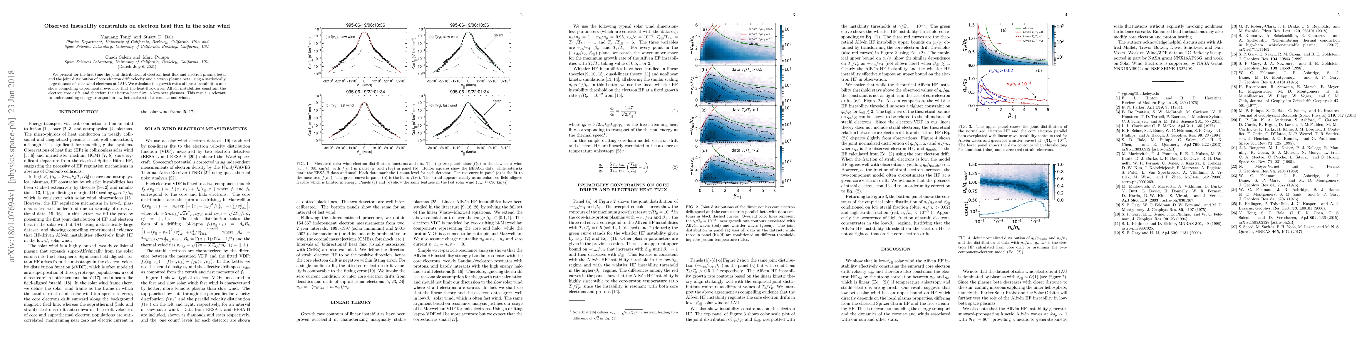 We present for the first time the joint distribution of electron heat flux and electron plasma beta, and the joint distribution of core electron drift velocity and electron plasma beta using a statistically large dataset of solar wind electrons at 1AU. We calculate the growth rates of linear instabilities and show compelling experimental evidence that the heat-flux-driven Alfv{\'e}n instabilities constrain the electron core drift, and therefore the electron heat flux, in low-beta plasmas. This result is relevant to understanding energy transport in low-beta solar/stellar coronae and winds.