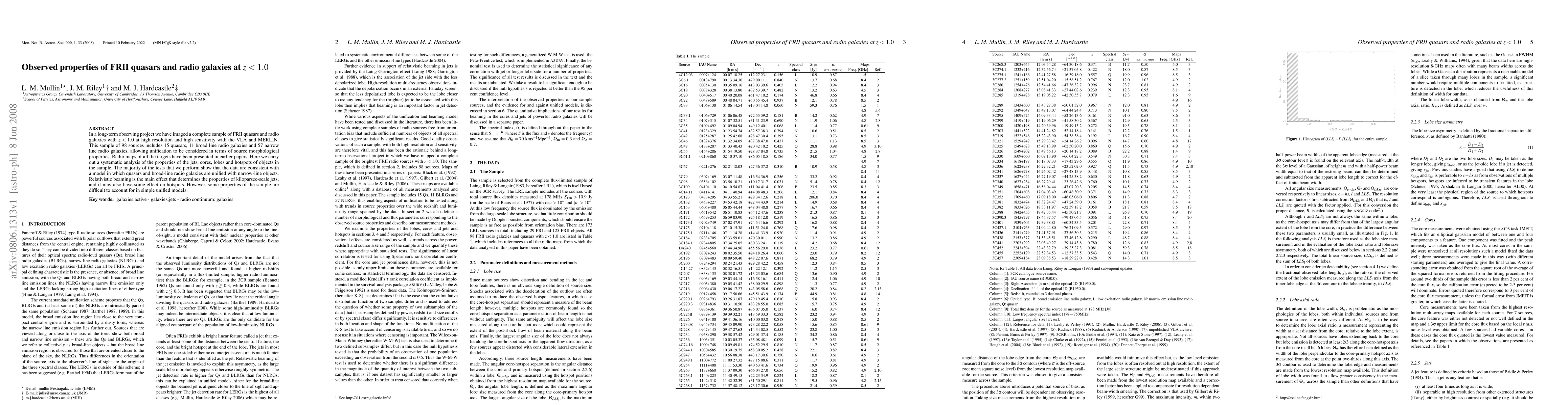 This paper analyzes the properties of FRII quasars and radio galaxies at redshifts less than 1.0, using high-resolution VLA and MERLIN observations. The study finds that most properties align with a unified model, where relativistic beaming primarily shapes jet and hotspot characteristics, but some anomalies remain unexplained by simple unification models.