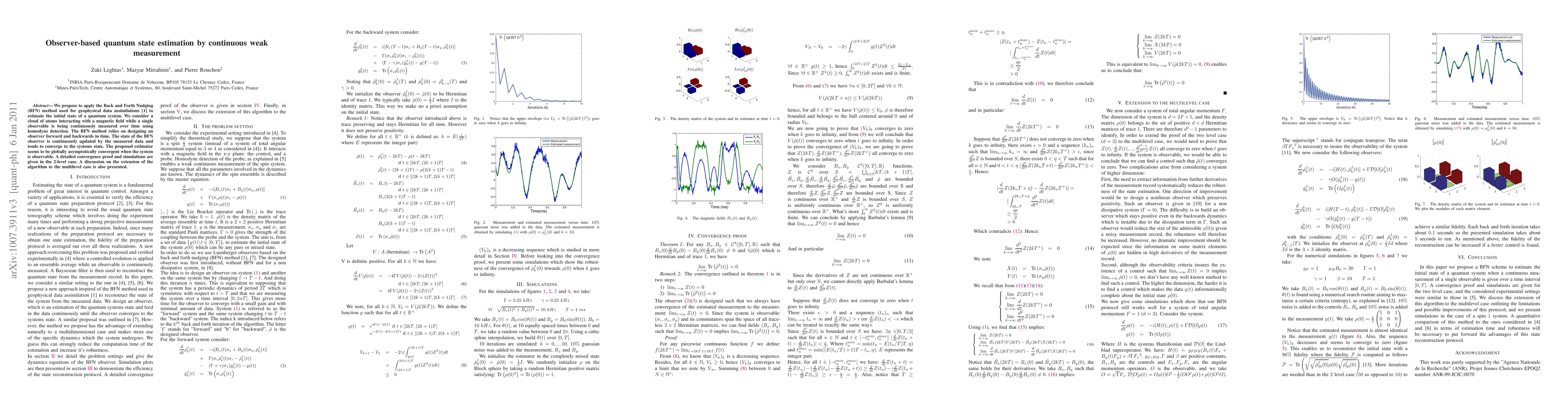 We propose to apply the Back and Forth Nudging (BFN) method used for geophysical data assimilations to estimate the initial state of a quantum system. We consider a cloud of atoms interacting with a magnetic field while a single observable is being continuously measured over time using homodyne detection. The BFN method relies on designing an observer forward and backwards in time. The state of the BFN observer is continuously updated by the measured data and tends to converge to the systems state. The proposed estimator seems to be globally asymptotically convergent when the system is observable. A detailed convergence proof and simulations are given in the 2-level case. A discussion on the extension of the algorithm to the multilevel case is also presented.