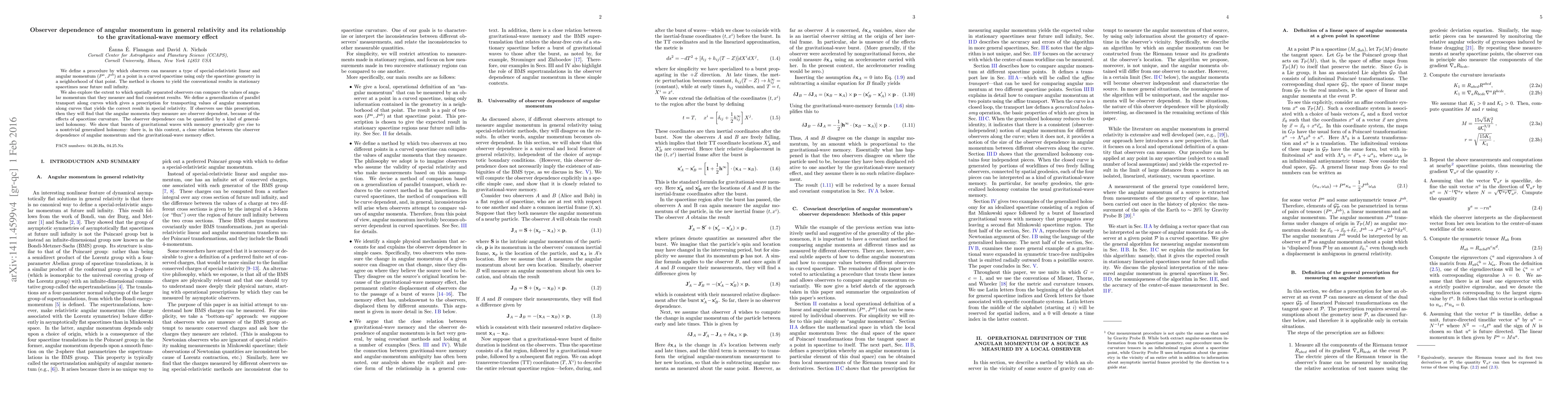 We define a procedure by which observers can measure a type of special-relativistic linear and angular momentum $(P^a, J^{ab})$ at a point in a curved spacetime using only the spacetime geometry in a neighborhood of that point. The method is chosen to yield the conventional results in stationary spacetimes near future null infinity. We also explore the extent to which spatially separated observers can compare the values of angular momentum that they measure and find consistent results. We define a generalization of parallel transport along curves which gives a prescription for transporting values of angular momentum along curves that yields the correct result in special relativity. If observers use this prescription, then they will find that the angular momenta they measure are observer dependent, because of the effects of spacetime curvature. The observer dependence can be quantified by a kind of generalized holonomy. We show that bursts of gravitational waves with memory generically give rise to a nontrivial generalized holonomy: there is, in this context, a close relation between the observer dependence of angular momentum and the gravitational-wave memory effect.