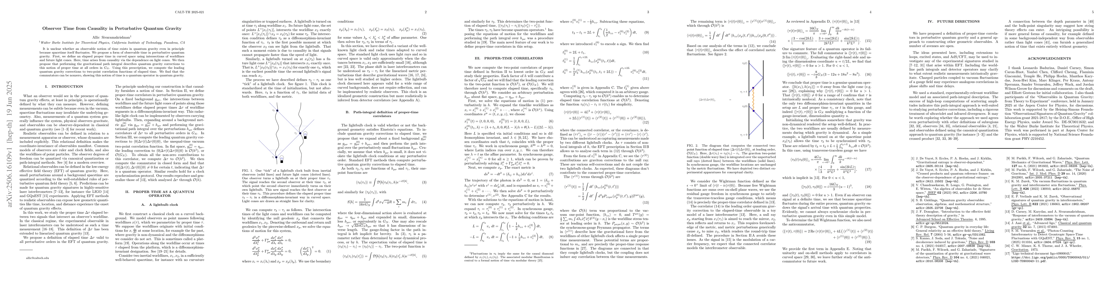 It is unclear whether an observable notion of time exists in quantum gravity even in principle because spacetime itself fluctuates. We propose a form of observable time in perturbative quantum gravity. First, we define an elapsed proper time in curved space using intersections of worldlines and future light cones. Here, time arises from causality via the dependence on light cones. We then propose that performing the gravitational path integral describes quantum gravity corrections to this notion of proper time at all orders in $G_N$. Using this prescription, we compute the leading quantum gravity corrections to two-point correlation functions of elapsed time. We find that the commutators can be nonzero, showing this notion of time is a quantum operator in quantum gravity.