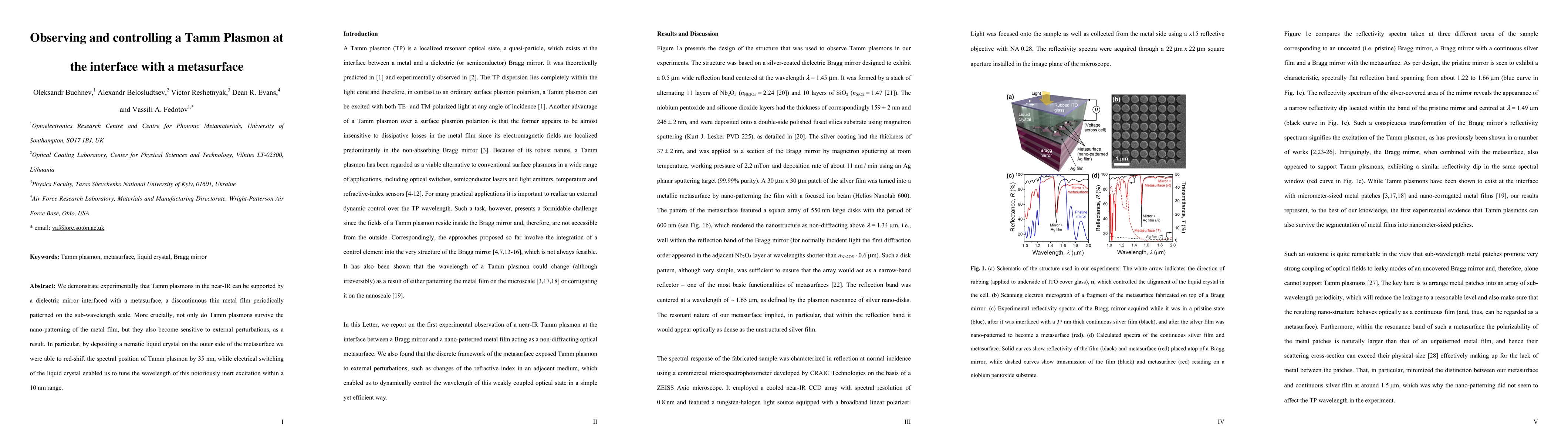 Researchers successfully control Tamm plasmons at a metal-metasurface interface, demonstrating sensitivity to external perturbations and tunability through liquid crystal manipulation.