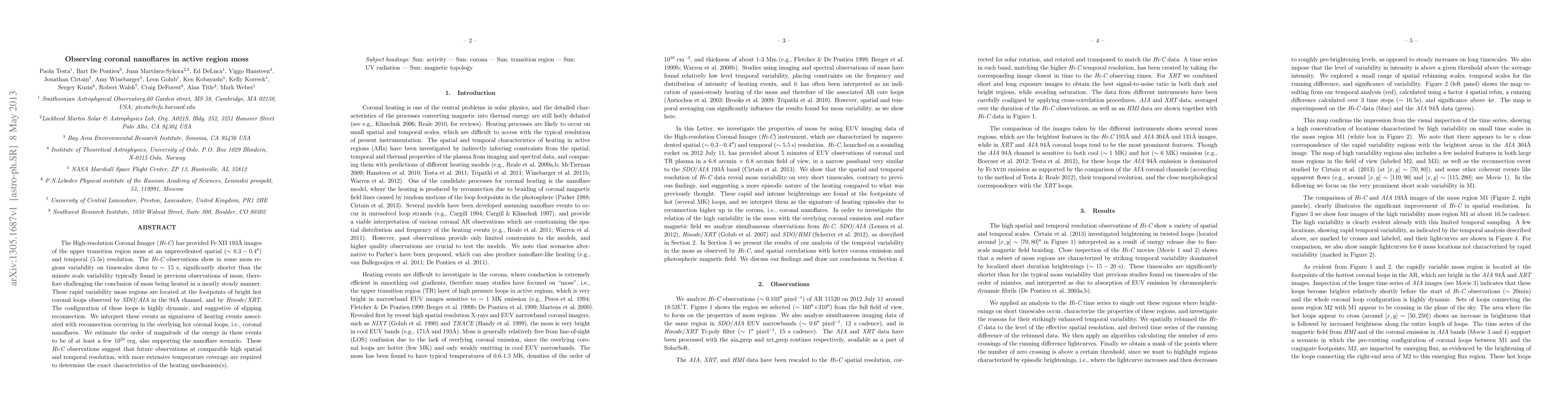 Hi-C's high-resolution imaging reveals rapid variability in moss regions, challenging previous views of steady heating. These events, occurring at footpoints of hot loops, are interpreted as coronal nanoflares, with energy estimates supporting this nanoflare scenario. Future high-resolution, temperature-extensive observations are advised to refine heating mechanism understanding.