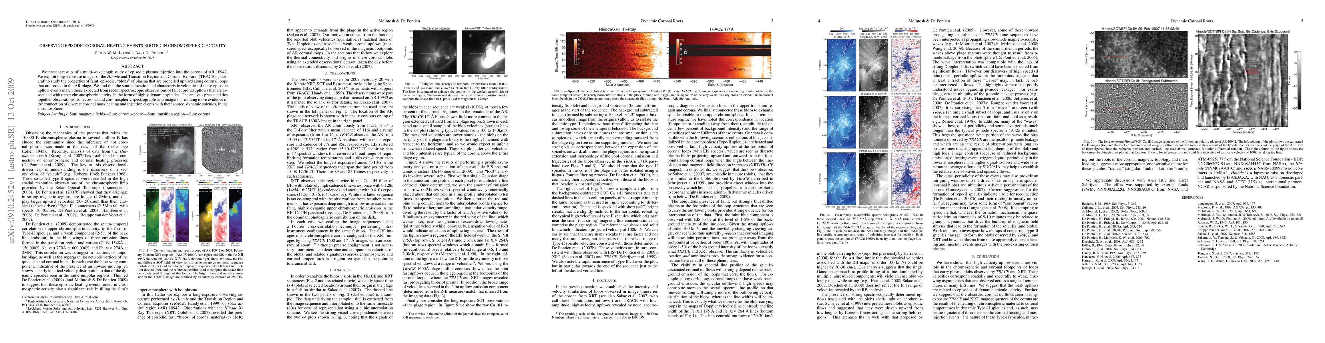This study uses multi-wavelength observations to investigate episodic plasma injections into the corona of AR 10942, finding that these events originate from dynamic spicules in the chromosphere. The results link discrete coronal heating events to chromospheric activity, reinforcing the connection between coronal mass injections and upper chromospheric dynamics.