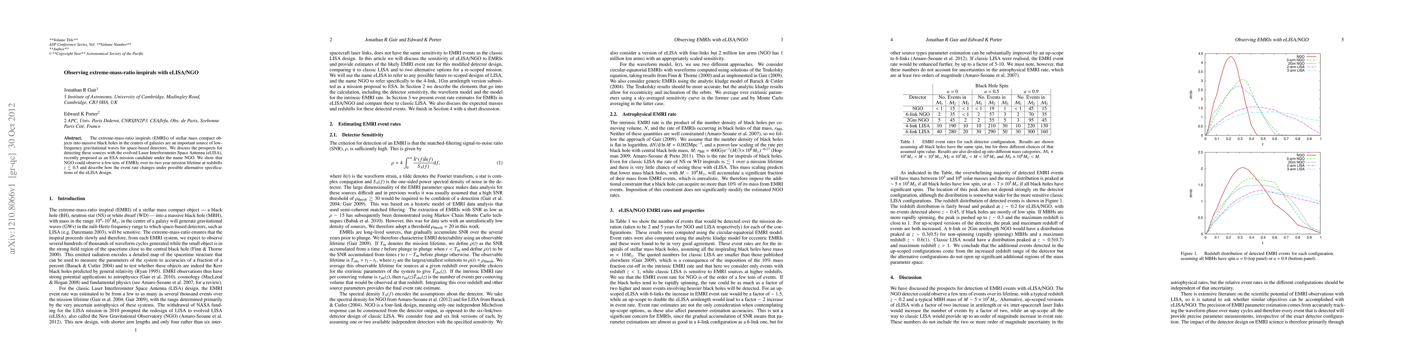 The paper explores the potential of the eLISA/NGO space-based detector to observe extreme-mass-ratio inspirals (EMRIs), which are significant sources of low-frequency gravitational waves. It predicts that eLISA could detect tens of EMRIs over its two-year mission, primarily at redshifts less than 0.5, and examines how variations in eLISA's design might affect the event rate.