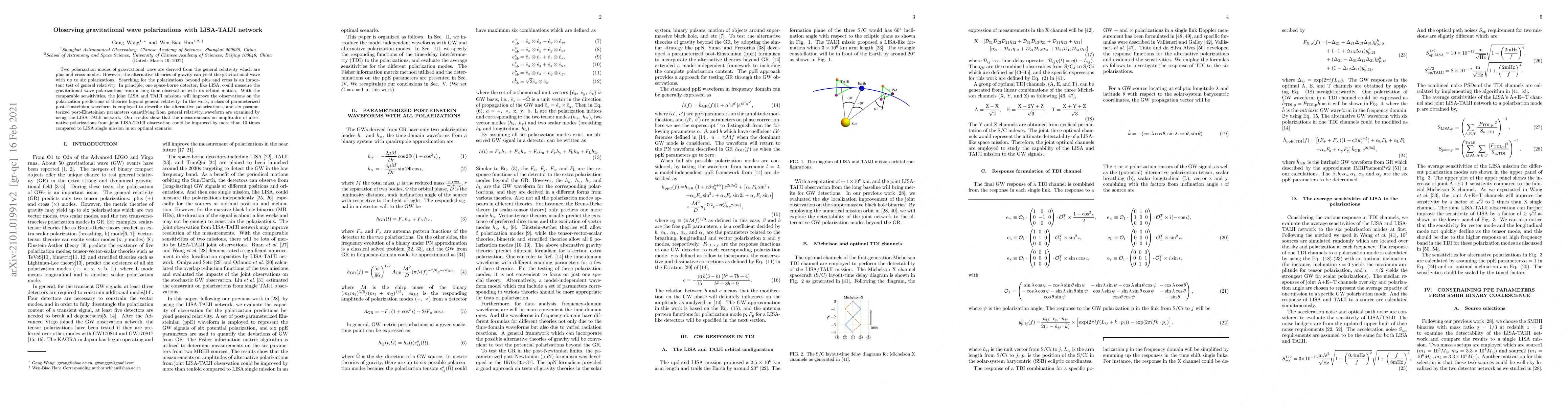 Two polarization modes of gravitational wave are derived from the general relativity which are plus and cross modes. However, the alternative theories of gravity can yield the gravitational wave with up to six polarizations. Searching for the polarizations beyond plus and cross is an important test of general relativity. In principle, one space-borne detector, like LISA, could measure the gravitational wave polarizations from a long time observation with its orbital motion. With the comparable sensitivities, the joint LISA and TAIJI missions will improve the observations on the polarization predictions of theories beyond general relativity. In this work, a class of parameterized post-Einsteinian waveform is employed to describe the alternative polarizations, and six parameterized post-Einsteinian parameters quantifying from general relativity waveform are examined by using the LISA-TAIJI network. Our results show that the measurements on amplitudes of alternative polarizations from joint LISA-TAIJI observation could be improved by more than 10 times compared to LISA single mission in an optimal scenario.