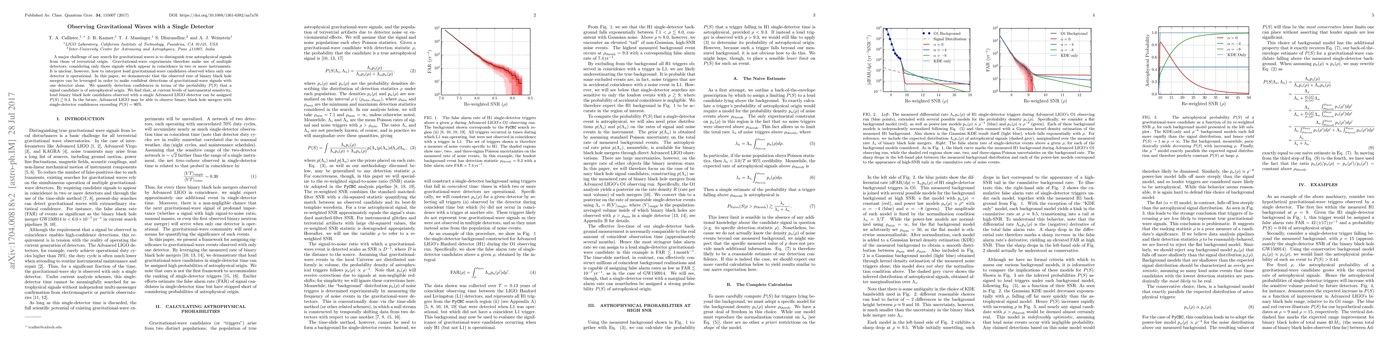 This paper explores the possibility of confidently detecting gravitational waves using a single detector, demonstrating that the observed rate of binary black hole mergers can support such detections. It finds that current sensitivity allows for single-detector candidates to have a detection probability of $P(S)\gtrsim0.4$, with future improvements potentially raising this to $P(S)\sim90\%$.
