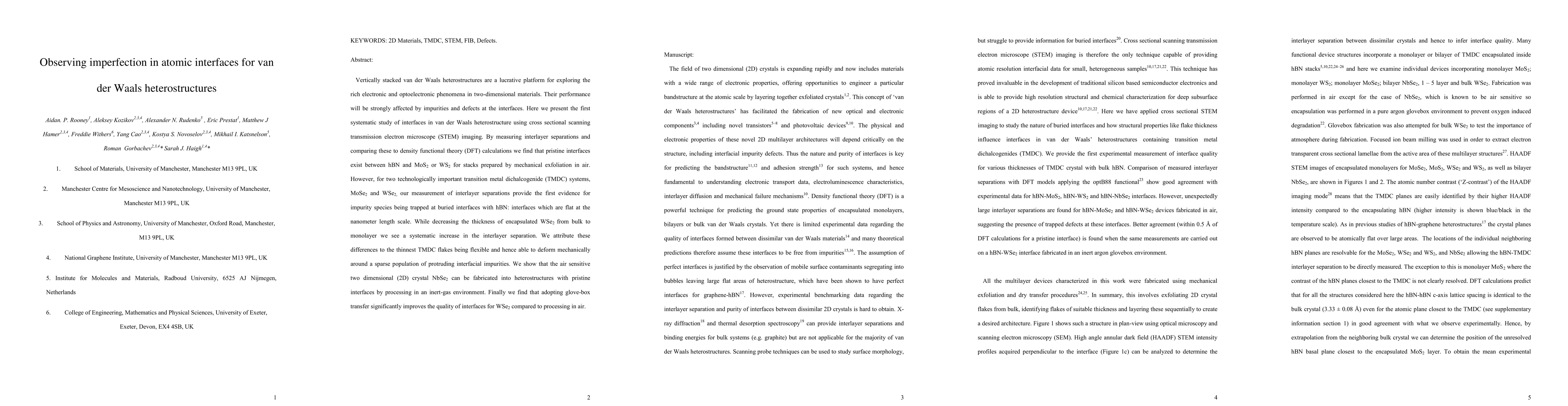 Researchers studied van der Waals heterostructures using STEM imaging to find that some interfaces have impurities, while others do not; adopting glove-box transfer improves interface quality.