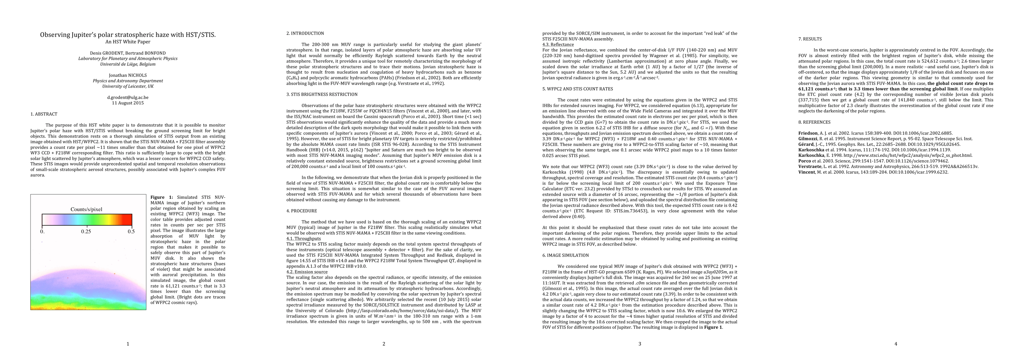The purpose of this HST white paper is to demonstrate that it is possible to monitor Jupiter's polar haze with HST/STIS without breaking the ground screening limit for bright objects. This demonstration rests on a thorough simulation of STIS output from an existing image obtained with HST/WFPC2. It is shown that the STIS NUV-MAMA + F25CIII filter assembly provides a count rate per pixel ~11 times smaller than that obtained for one pixel of WFPC2 WF3 CCD + F218W corresponding filter. This ratio is sufficiently large to cope with the bright solar light scattered by Jupiter's atmosphere, which was a lesser concern for WFPC2 CCD safety. These STIS images would provide unprecedented spatial and temporal resolution observations of small-scale stratospheric aerosol structures, possibly associated with Jupiter's complex FUV aurora.