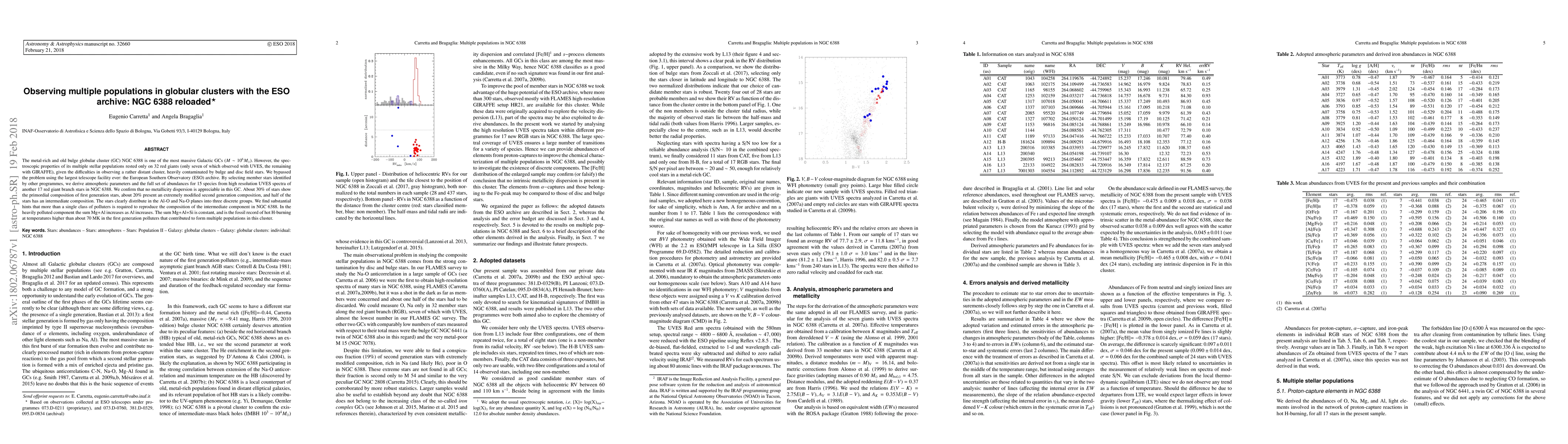 Researchers analyzed 17 red giant stars in globular cluster NGC 6388 using UVES spectra, finding three distinct groups of stars with different compositions, suggesting multiple classes of polluters were needed to form the intermediate component.