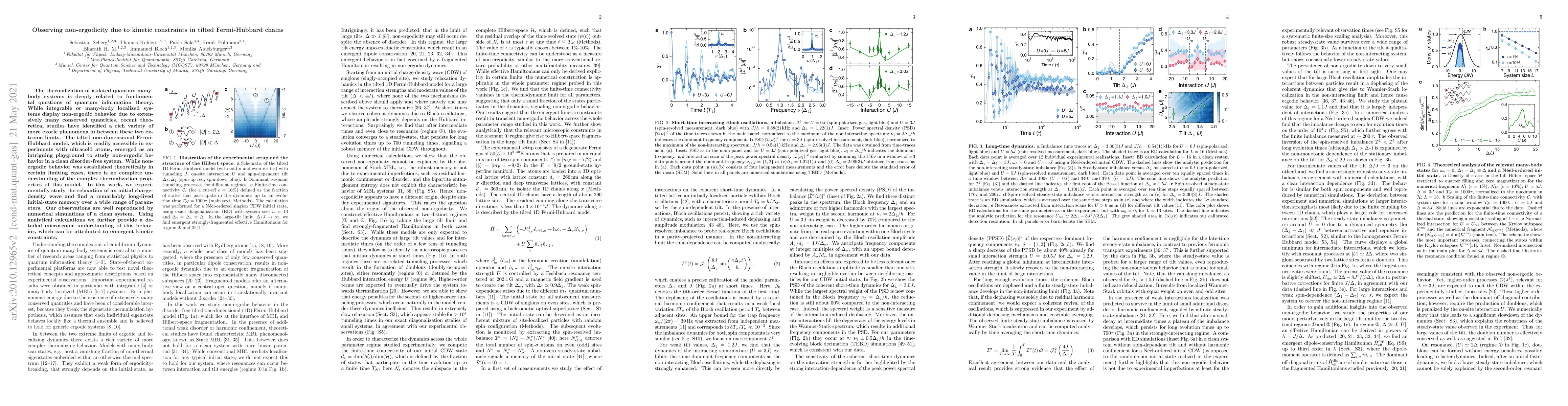 The thermalization of isolated quantum many-body systems is deeply related to fundamental questions of quantum information theory. While integrable or many-body localized systems display non-ergodic behavior due to extensively many conserved quantities, recent theoretical studies have identified a rich variety of more exotic phenomena in between these two extreme limits. The tilted one-dimensional Fermi-Hubbard model, which is readily accessible in experiments with ultracold atoms, emerged as an intriguing playground to study non-ergodic behavior in a clean disorder-free system. While non-ergodic behavior was established theoretically in certain limiting cases, there is no complete understanding of the complex thermalization properties of this model. In this work, we experimentally study the relaxation of an initial charge-density wave and find a remarkably long-lived initial-state memory over a wide range of parameters. Our observations are well reproduced by numerical simulations of a clean system. Using analytical calculations we further provide a detailed microscopic understanding of this behavior, which can be attributed to emergent kinetic constraints.