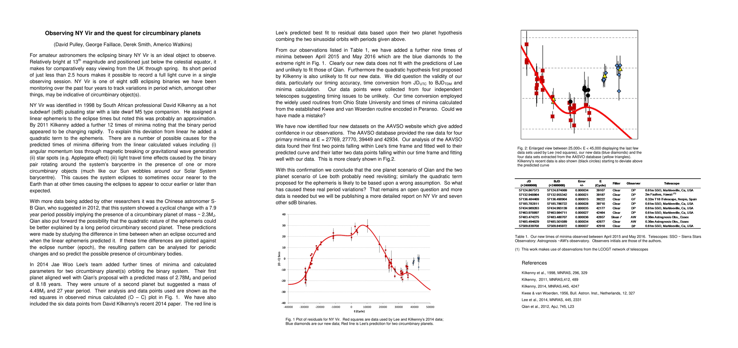We add 9 new observations of NY Vir and identify four others from AASVO database. Our results indicste that the one and two exo-planet predictions made by earlier authors do not match these new results.