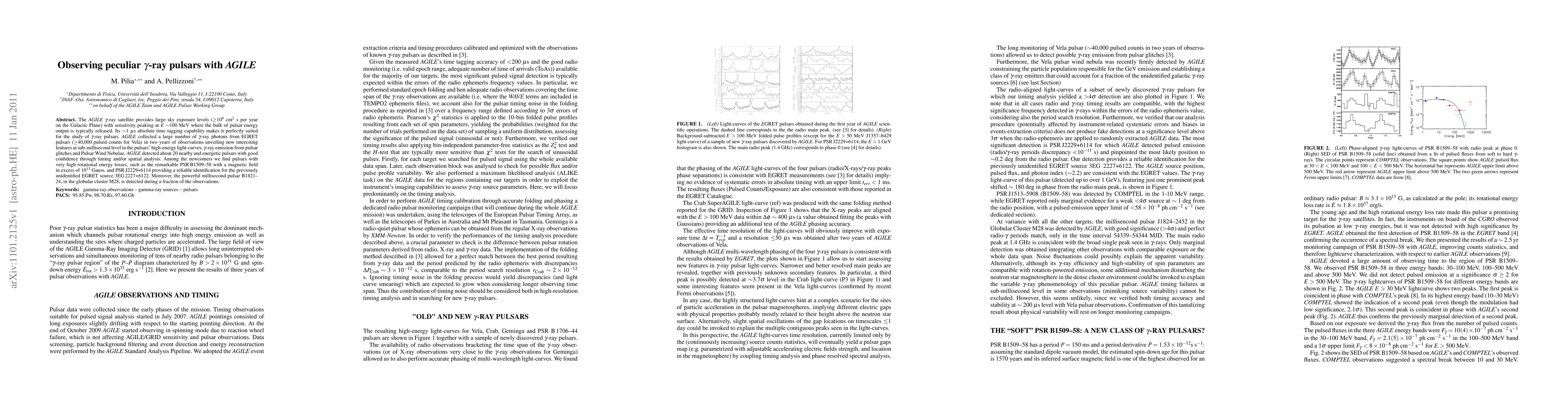The AGILE satellite has identified and analyzed peculiar gamma-ray pulsars, revealing new features in their high-energy light-curves and detecting pulsars with high rotational energy losses, including PSR B1509-58 and PSR J2229+6114. The study also detected the millisecond pulsar B1821-24 in M28 during part of the observations.