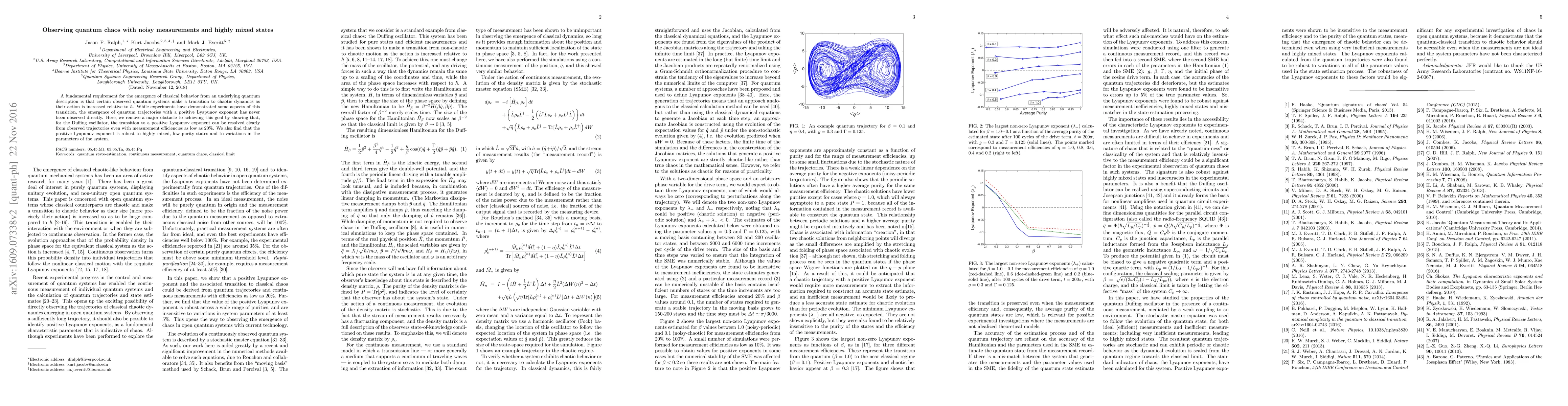 A fundamental requirement for the emergence of classical behavior from an underlying quantum description is that certain observed quantum systems make a transition to chaotic dynamics as their action is increased relative to $\hbar$. While experiments have demonstrated some aspects of this transition, the emergence of quantum trajectories with a positive Lyapunov exponent has never been observed directly. Here, we remove a major obstacle to achieving this goal by showing that, for the Duffing oscillator, the transition to a positive Lyapunov exponent can be resolved clearly from observed trajectories even with measurement efficiencies as low as 20%. We also find that the positive Lyapunov exponent is robust to highly mixed, low purity states and to variations in the parameters of the system.