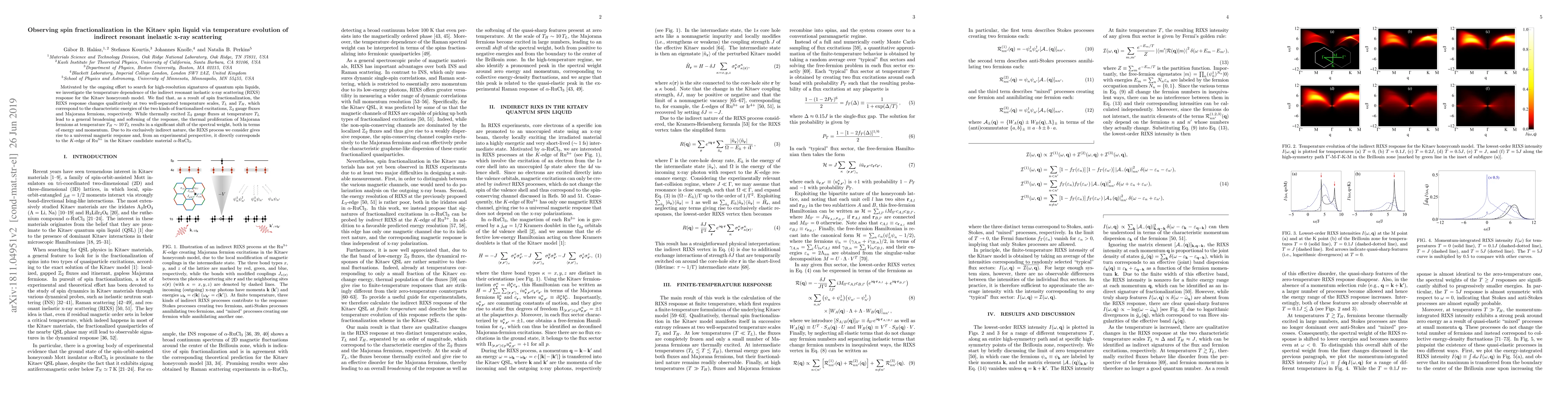 This paper investigates the temperature-dependent indirect resonant inelastic x-ray scattering (RIXS) response in the Kitaev spin liquid, revealing spin fractionalization through qualitative changes at two distinct temperature scales, $T_L$ and $T_H$. The study highlights the universal magnetic response linked to the $K$-edge of Ru$^{3+}$ in $\alpha$-RuCl$_3$.