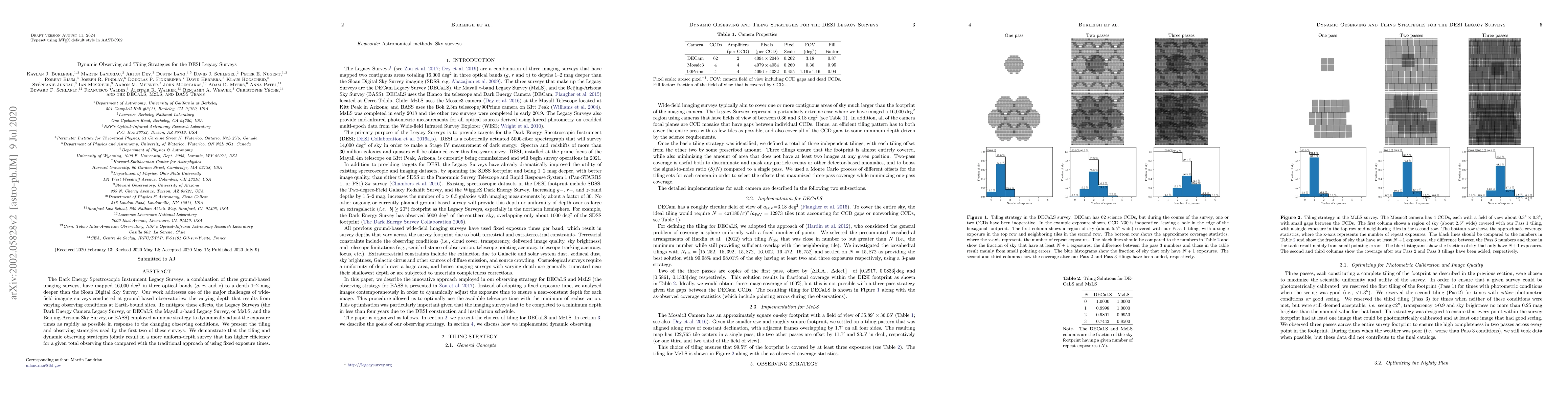 The Legacy Surveys employed a dynamic observing strategy, adjusting exposure times in response to changing conditions to ensure uniform depth across 16,000 deg² in three optical bands ($g$, $r$, and $z$). This strategy was implemented using two Python software 'bots' (copilot and decbot/mosbot) to monitor observing conditions and telescope offsets, adjusting exposure times with a lag of 1-2 frames.