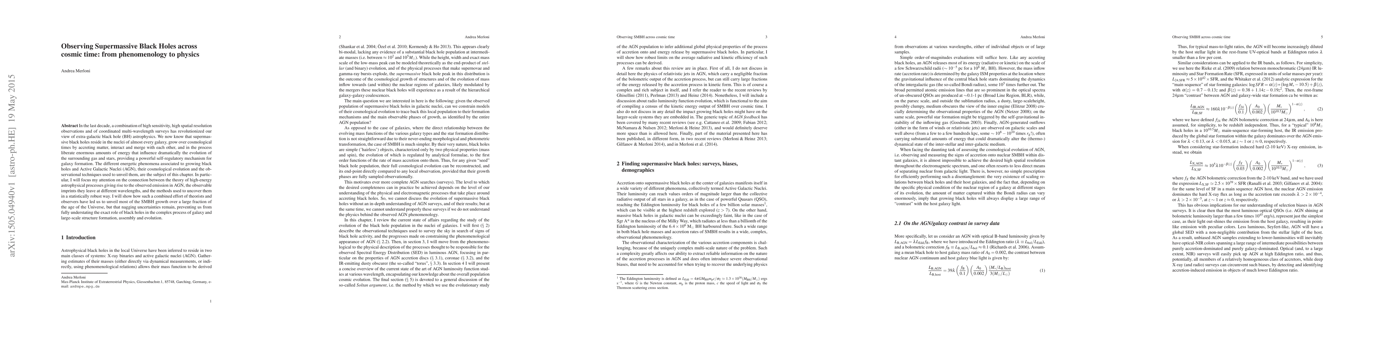 In the last decade, a combination of high sensitivity, high spatial resolution observations and of coordinated multi-wavelength surveys has revolutionized our view of extra-galactic black hole (BH) astrophysics. We now know that supermassive black holes reside in the nuclei of almost every galaxy, grow over cosmological times by accreting matter, interact and merge with each other, and in the process liberate enormous amounts of energy that influence dramatically the evolution of the surrounding gas and stars, providing a powerful self-regulatory mechanism for galaxy formation. The different energetic phenomena associated to growing black holes and Active Galactic Nuclei (AGN), their cosmological evolution and the observational techniques used to unveil them, are the subject of this chapter. In particular, I will focus my attention on the connection between the theory of high-energy astrophysical processes giving rise to the observed emission in AGN, the observable imprints they leave at different wavelengths, and the methods used to uncover them in a statistically robust way. I will show how such a combined effort of theorists and observers have led us to unveil most of the SMBH growth over a large fraction of the age of the Universe, but that nagging uncertainties remain, preventing us from fully understating the exact role of black holes in the complex process of galaxy and large-scale structure formation, assembly and evolution.