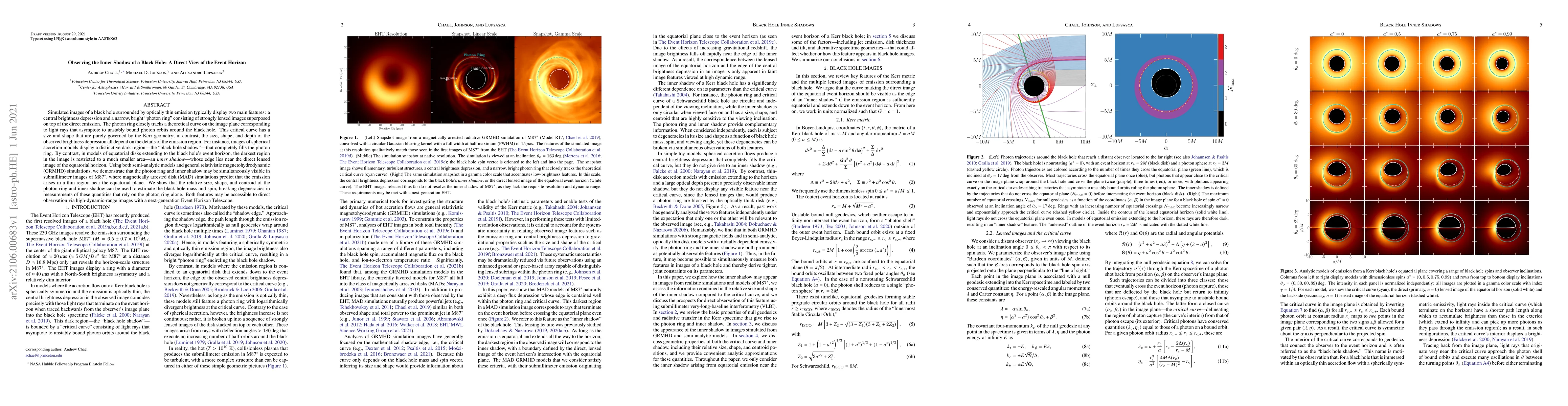 Simulated images of a black hole surrounded by optically thin emission typically display two main features: a central brightness depression and a narrow, bright "photon ring" consisting of strongly lensed images superposed on top of the direct emission. The photon ring closely tracks a theoretical curve on the image plane corresponding to light rays that asymptote to unstably bound photon orbits around the black hole. This critical curve has a size and shape that are purely governed by the Kerr geometry; in contrast, the size, shape, and depth of the observed brightness depression all depend on the details of the emission region. For instance, images of spherical accretion models display a distinctive dark region -- the "black hole shadow" -- that completely fills the photon ring. By contrast, in models of equatorial disks extending to the black hole's event horizon, the darkest region in the image is restricted to a much smaller area -- an inner shadow -- whose edge lies near the direct lensed image of the equatorial horizon. Using both semi-analytic models and general relativistic magnetohydrodynamic (GRMHD) simulations, we demonstrate that the photon ring and inner shadow may be simultaneously visible in submillimeter images of M87*, where magnetically arrested disk (MAD) simulations predict that the emission arises in a thin region near the equatorial plane. We show that the relative size, shape, and centroid of the photon ring and inner shadow can be used to estimate the black hole mass and spin, breaking degeneracies in measurements of these quantities that rely on the photon ring alone. Both features may be accessible to direct observation via high-dynamic-range images with a next-generation Event Horizon Telescope.