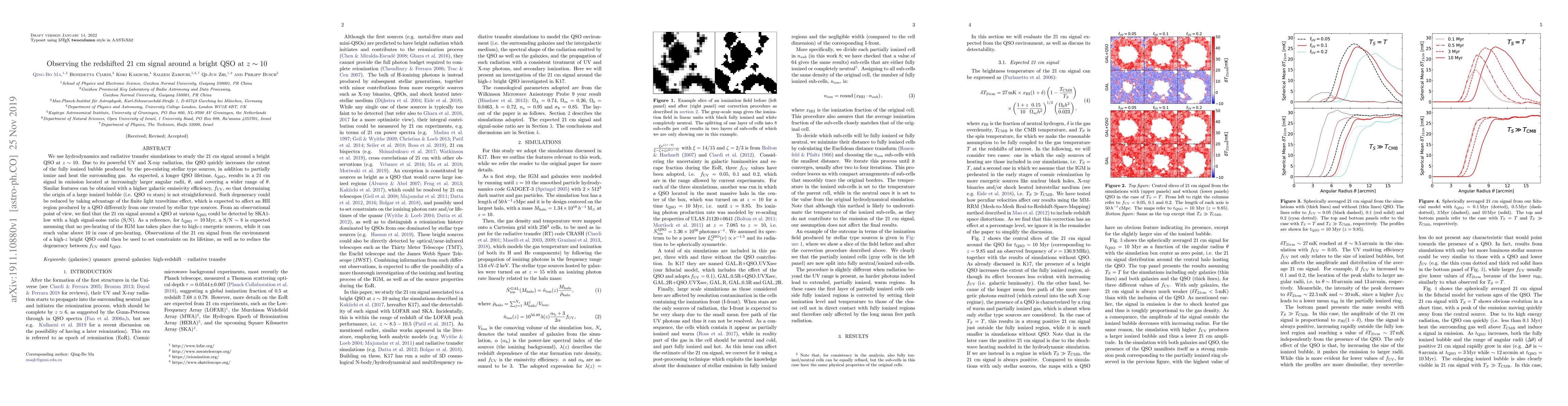 Researchers used simulations to study the 21 cm signal around a bright QSO at z ~ 10, finding that its lifetime affects the signal's location and range, and suggest this could be detectable by future radio telescopes with high sensitivity.