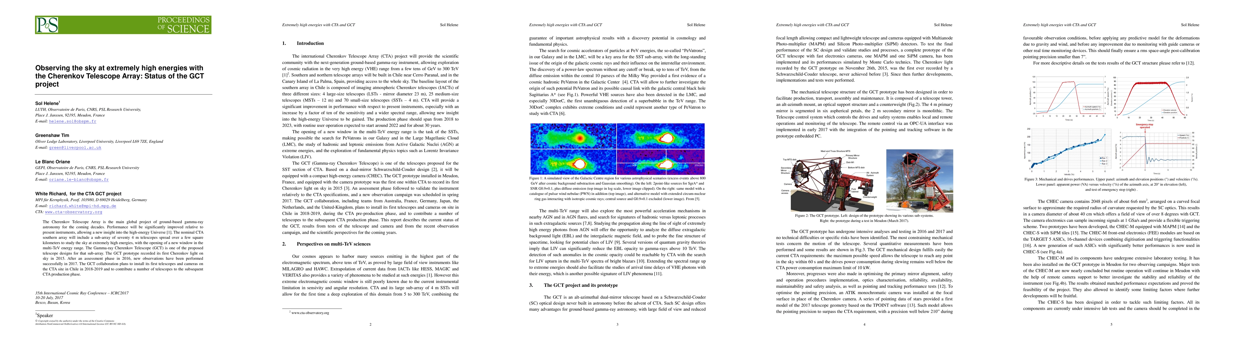The Cherenkov Telescope Array (CTA) aims to significantly enhance ground-based gamma-ray astronomy, with a focus on the southern array's sub-array of 70 4 m telescopes for high-energy sky observations. The GCT prototype successfully recorded Cherenkov light in 2015 and plans to install its first telescopes in Chile by 2019.
