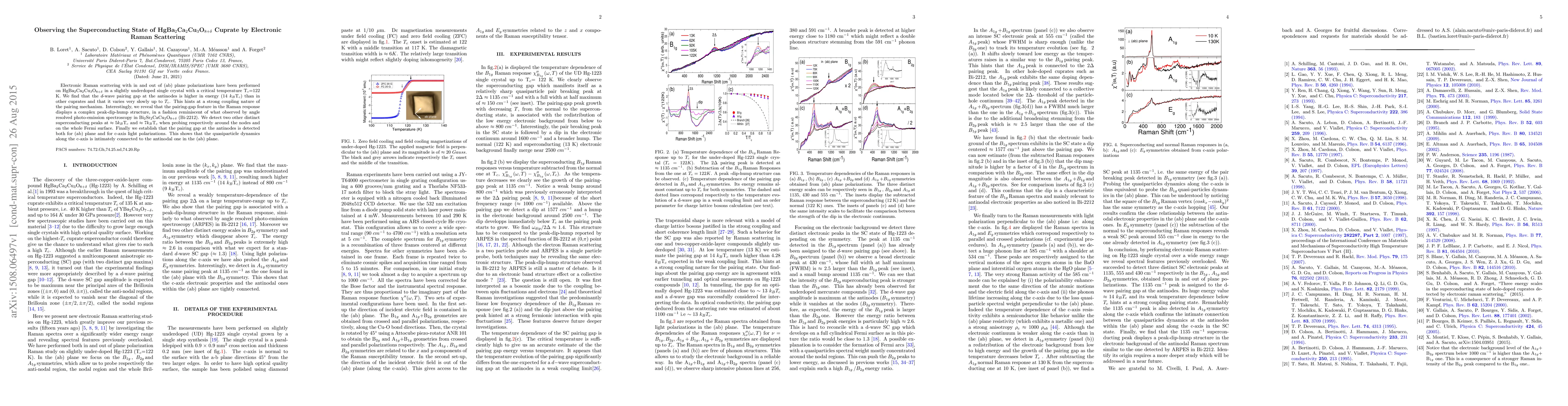 Researchers used electronic Raman scattering to study HgBa2Ca2Cu3O8+d, a superconductor with a high critical temperature of 122 K, revealing a strong coupling nature of the pairing mechanism and complex quasiparticle dynamics.