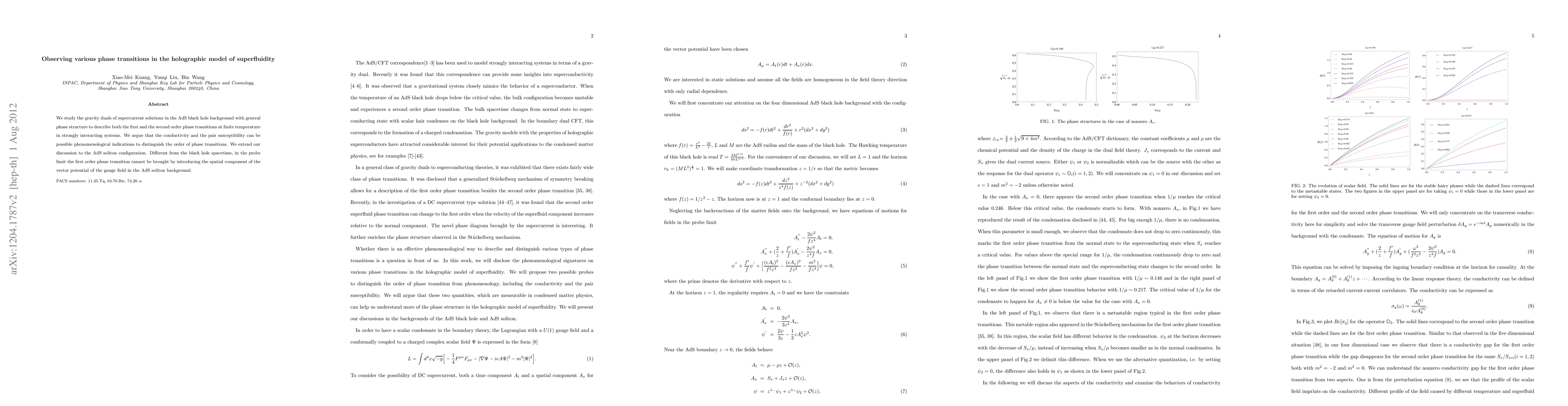 This paper investigates phase transitions in holographic superfluid models using AdS black hole and AdS soliton backgrounds, proposing that conductivity and pair susceptibility can indicate the order of these transitions. It finds that first-order phase transitions differ in the probe limit between black hole and soliton configurations.