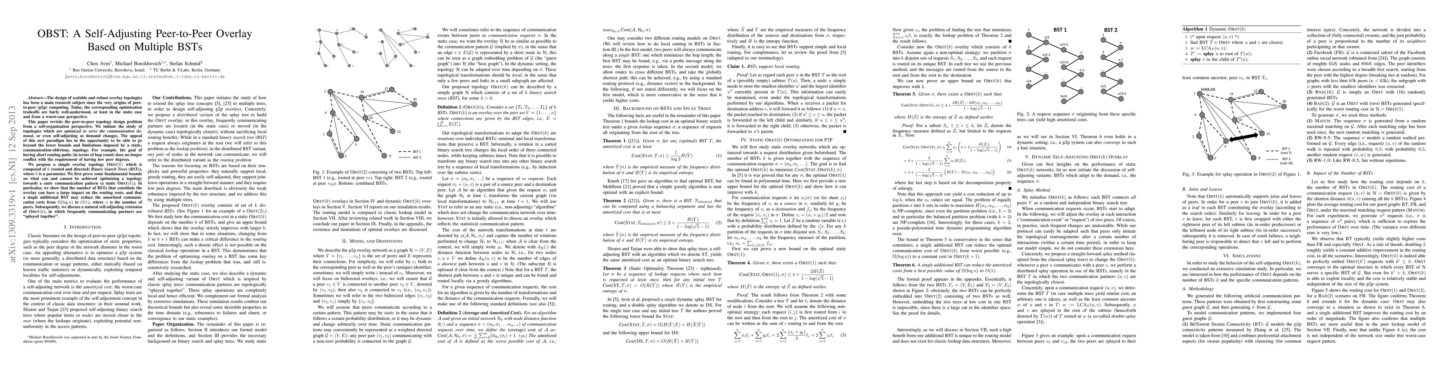 The design of scalable and robust overlay topologies has been a main research subject since the very origins of peer-to-peer (p2p) computing. Today, the corresponding optimization tradeoffs are fairly well-understood, at least in the static case and from a worst-case perspective. This paper revisits the peer-to-peer topology design problem from a self-organization perspective. We initiate the study of topologies which are optimized to serve the communication demand, or even self-adjusting as demand changes. The appeal of this new paradigm lies in the opportunity to be able to go beyond the lower bounds and limitations imposed by a static, communication-oblivious, topology. For example, the goal of having short routing paths (in terms of hop count) does no longer conflict with the requirement of having low peer degrees. We propose a simple overlay topology Obst(k) which is composed of k (rooted and directed) Binary Search Trees (BSTs), where k is a parameter. We first prove some fundamental bounds on what can and cannot be achieved optimizing a topology towards a static communication pattern (a static Obst(k)). In particular, we show that the number of BSTs that constitute the overlay can have a large impact on the routing costs, and that a single additional BST may reduce the amortized communication costs from Omega(log(n)) to O(1), where n is the number of peers. Subsequently, we discuss a natural self-adjusting extension of Obst(k), in which frequently communicating partners are "splayed together".