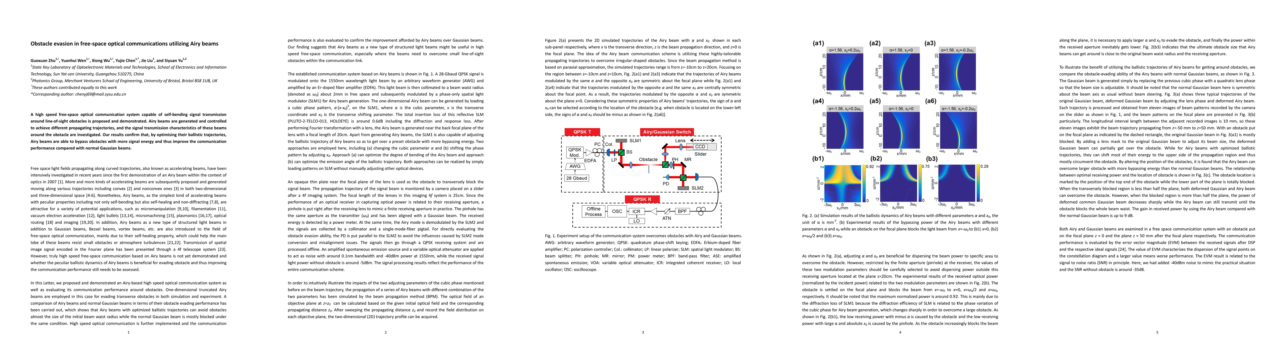 Researchers developed a free-space optical communication system that uses Airy beams to evade line-of-sight obstacles, improving signal transmission performance.