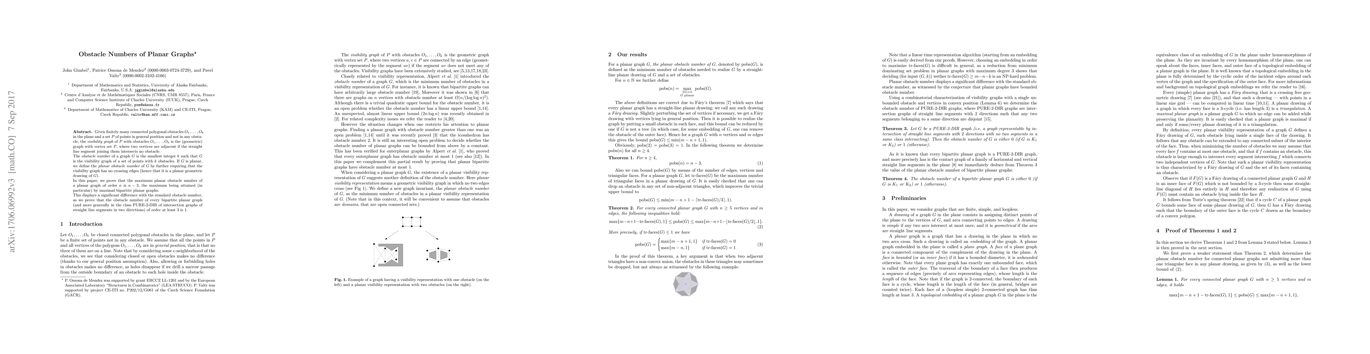 Given finitely many connected polygonal obstacles $O_1,\dots,O_k$ in the plane and a set $P$ of points in general position and not in any obstacle, the {\em visibility graph} of $P$ with obstacles $O_1,\dots,O_k$ is the (geometric) graph with vertex set $P$, where two vertices are adjacent if the straight line segment joining them intersects no obstacle. The obstacle number of a graph $G$ is the smallest integer $k$ such that $G$ is the visibility graph of a set of points with $k$ obstacles. If $G$ is planar, we define the planar obstacle number of $G$ by further requiring that the visibility graph has no crossing edges (hence that it is a planar geometric drawing of $G$). In this paper, we prove that the maximum planar obstacle number of a planar graph of order $n$ is $n-3$, the maximum being attained (in particular) by maximal bipartite planar graphs. This displays a significant difference with the standard obstacle number, as we prove that the obstacle number of every bipartite planar graph (and more generally in the class PURE-2-DIR of intersection graphs of straight line segments in two directions) of order at least $3$ is $1$.