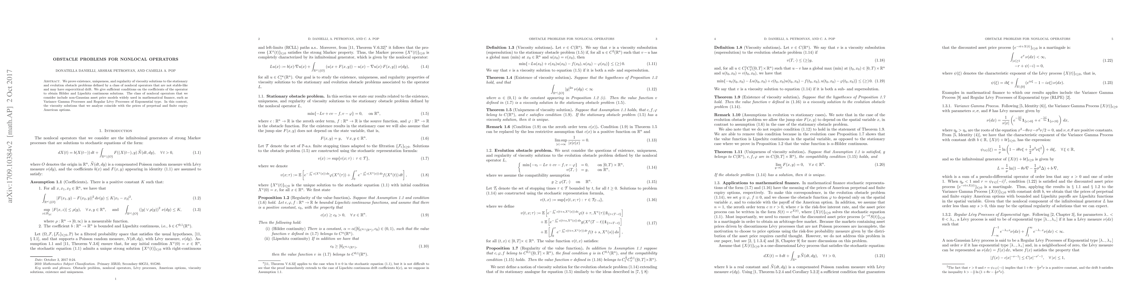 This paper establishes existence, uniqueness, and regularity of viscosity solutions for stationary and evolution obstacle problems governed by nonlocal operators, including non-Gaussian models used in finance. It provides conditions for H\"older and Lipschitz continuity of these solutions.