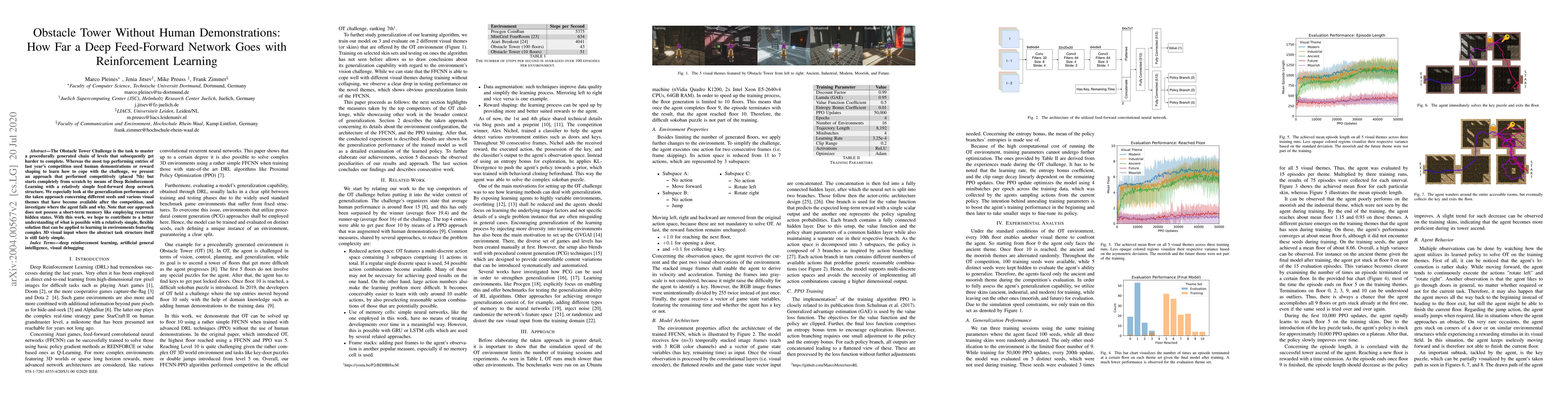 This paper explores the Obstacle Tower Challenge using Deep Reinforcement Learning without human demonstrations, achieving competitive results with a simple feed-forward network. The study focuses on the generalization and failure modes of the approach across different seeds and visual themes, aiming to demonstrate the potential of straightforward methods in complex 3D environments.