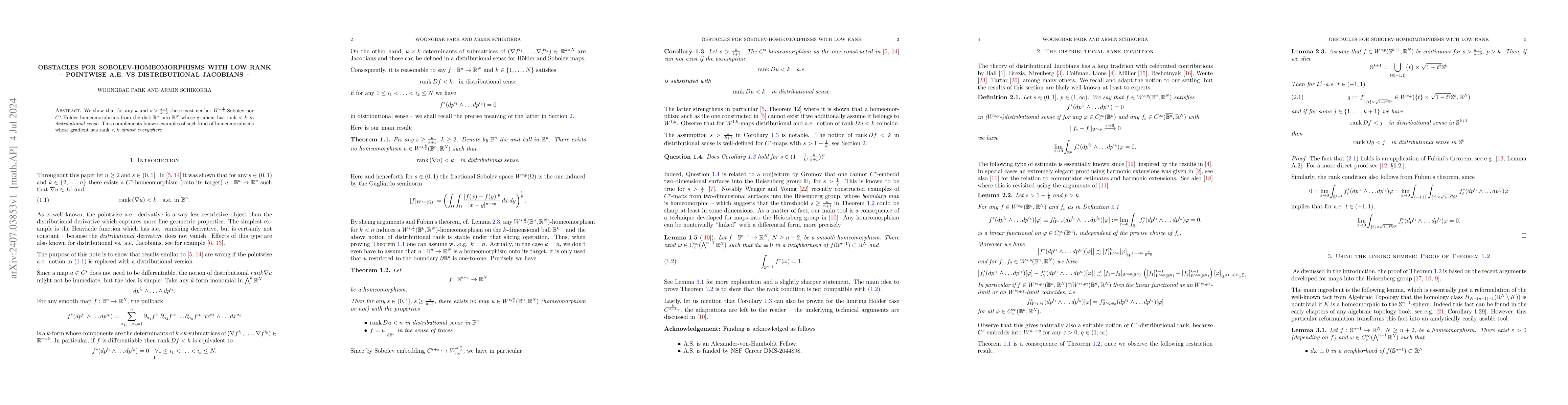 Summary: The paper demonstrates that no $W^{s,\frac{k}{s}}$-Sobolev or $C^s$-Hölder homeomorphisms from the disk into $\mathbb{R}^N$ exist with a gradient of rank less than $k$ in the distributional sense, contrasting with known examples where the gradient has rank less than $k$ almost everywhere.