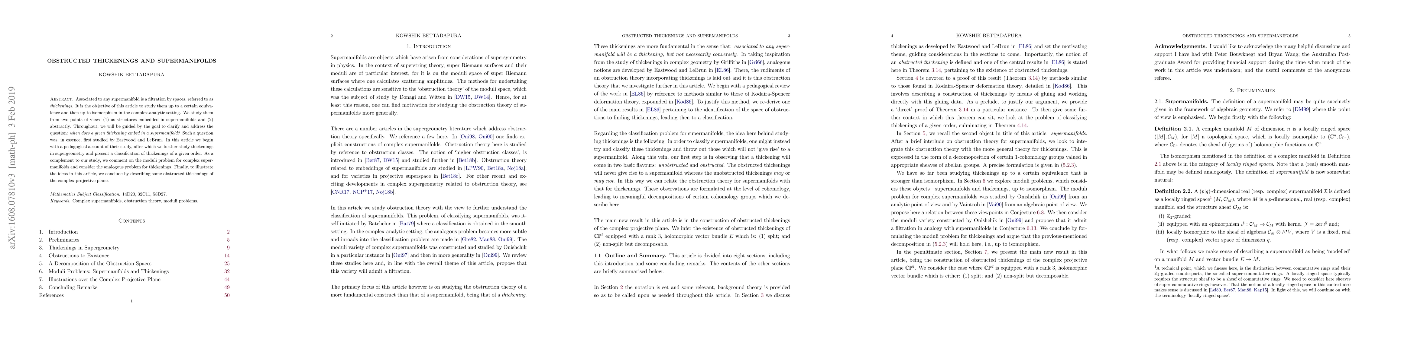 Associated to any supermanifold is a filtration by spaces, referred to as thickenings. It is the objective of this article to study them up to a certain equivalence and then up to isomorphism in the complex-analytic setting. We study them from two points of view: (1) as structures embedded in supermanifolds and (2) abstractly. Throughout, we will be guided by the goal to clarify and address the question: when does a given thickening embed in a supermanifold? Such a question was, in essence, first studied by Eastwood and LeBrun. In this article we begin with a pedagogical account of their study, after which we further study thickenings in supergeometry and present a classification of thickenings of a given order. As a complement to our study, we comment on the moduli problem for complex supermanifolds and consider the analogous problem for thickenings. Finally, to illustrate the ideas in this article, we conclude by describing some obstructed thickenings of the complex projective plane.