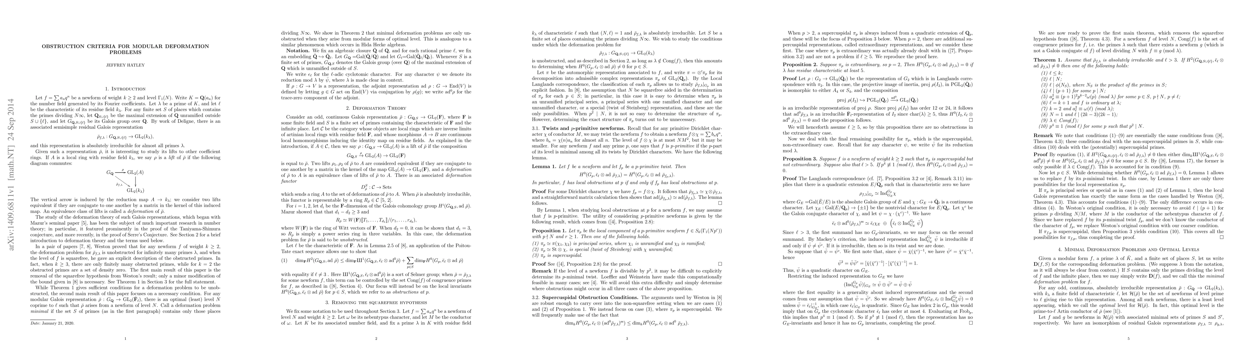 For a newform $f=\sum a_n q^n$ of weight $k \geq 3$ and a prime $\lambda$ of $\mathbf{Q}(a_n)$, the deformation problem for its associated mod $\lambda$ Galois representation is unobstructed for all primes outside some finite set. Previous results gave an explicit bound on this finite set for $f$ of squarefree level; we modify this bound and remove the squarefree hypothesis. We also show that if the $\lambda$-adic deformation problem for $f$ is unobstructed, then $f$ is not congruent mod $\lambda$ to a newform of lower level.