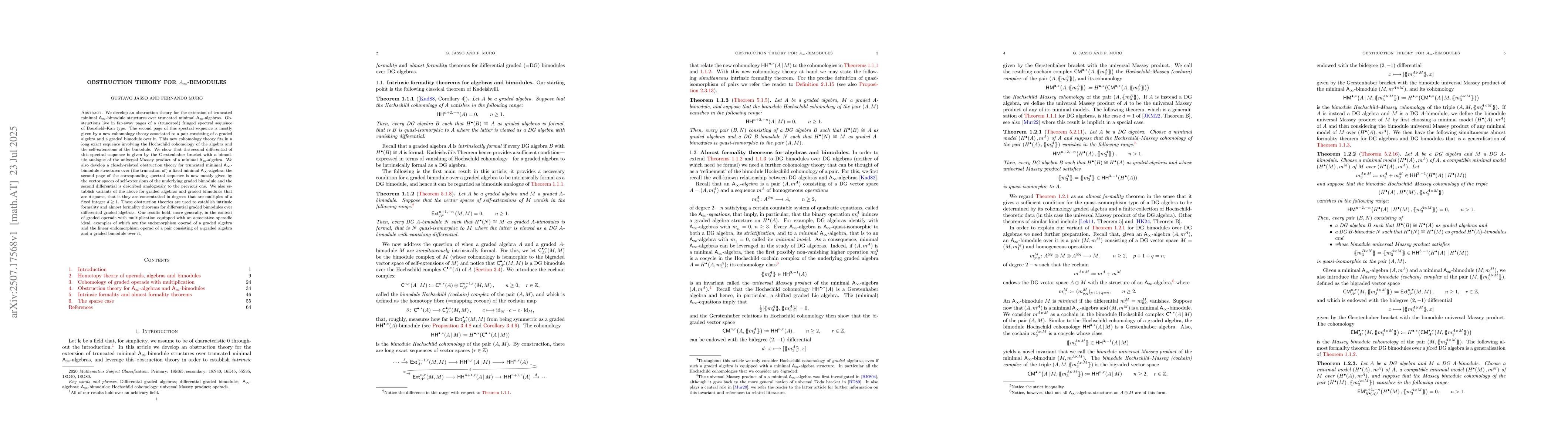 The work presents an advanced obstruction theory tailored for $A$-infinity bimodules, incorporating a novel cohomology theory and extending classical formality results to the $A$-infinity setting.